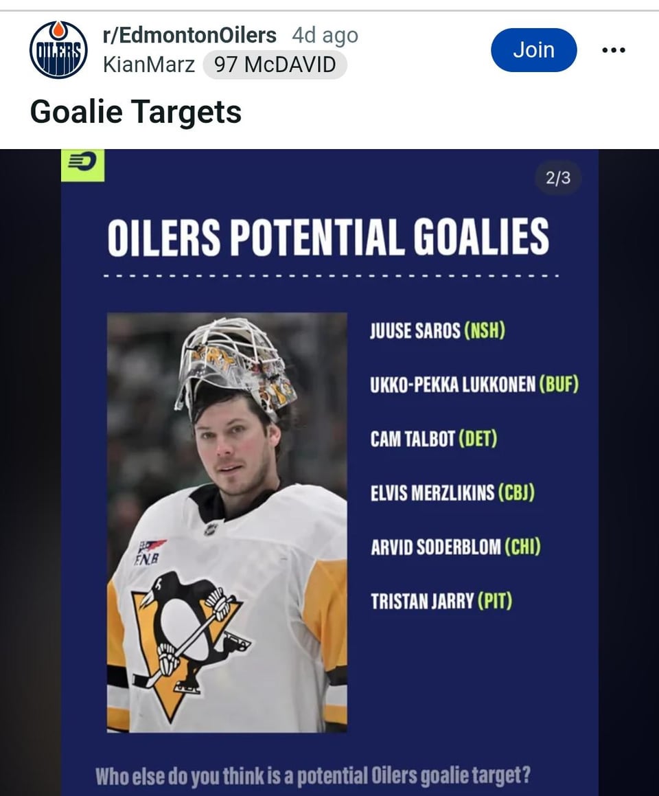 I know everyone’s down on UPL but he has had periods of starter-caliber play and starting goalies just do not move very often in this league. He’s not going to carry any team on his back but he probably *would* be an upgrade for the Oilers.