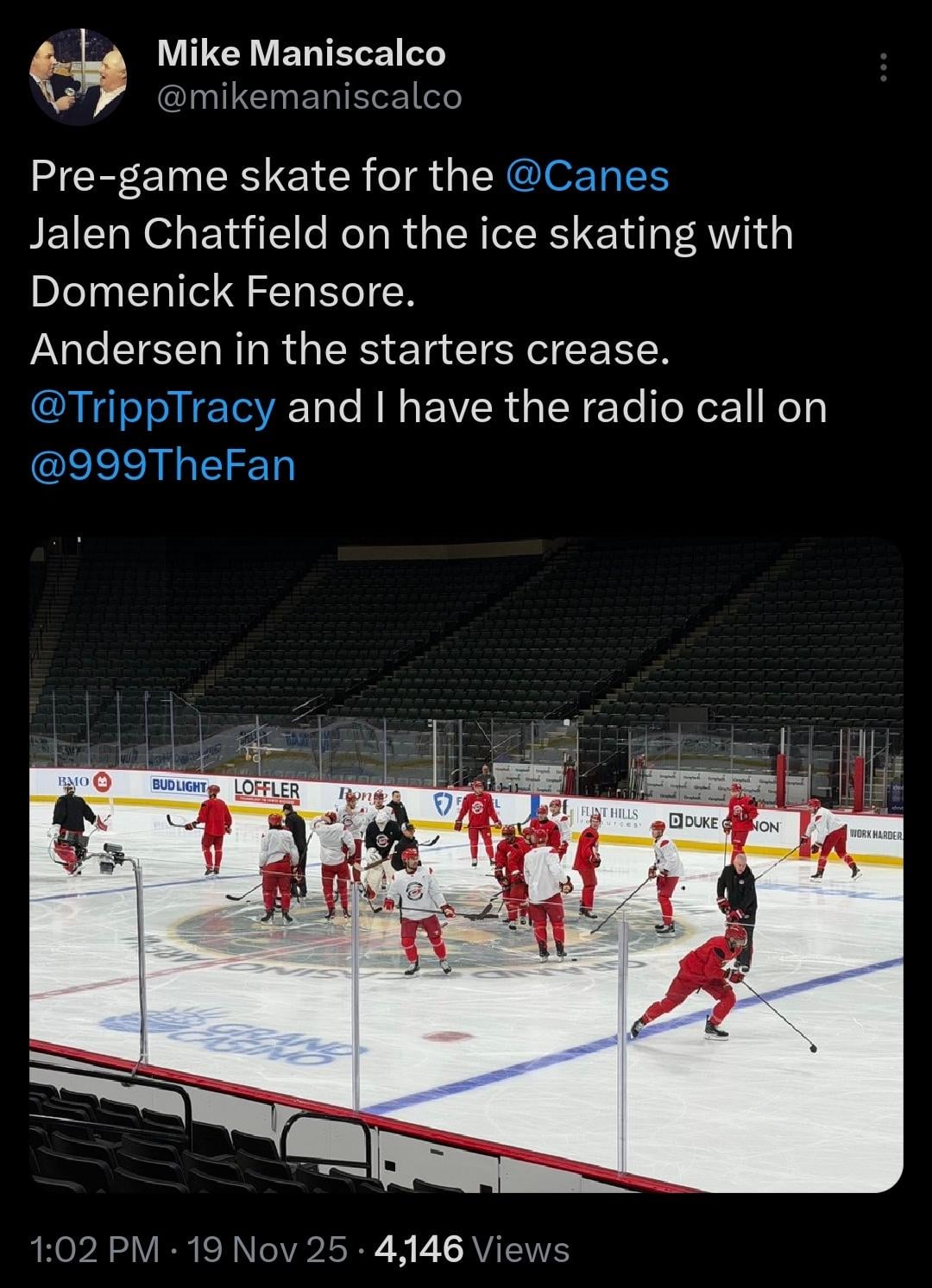 Chatfield skates pregame, Andersen in the starter’s crease 7 comments  Glad to see chatfield back ….. hate he got hurt but that fight staal got in was epic Chatty gonna return the favor on Pitlicker The fact he was skating with Fensore does make me wonder if he’ll actually go tonight Im guessing Bussi is strictly going to be a backup goalie for if one of the A/B combo is out / feeling unwell. I was personally hoping for a 40/40/20 split but maybe we’re not there yet. Freddie needs to have strong game tonight. The world is healing Leave a ReplyYou must be logged in to post a comment.