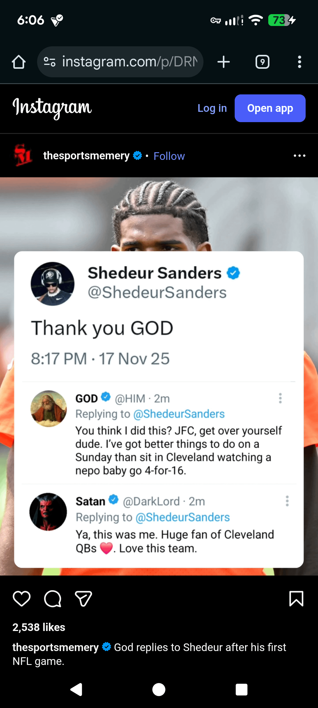 Not Steelers, AFC North, it is funny 11 comments John 3:16 met his match shadeur 4:16 Thatโs a knee slapper I love watching arrogant people fail. Lmmao Remember when several mock drafts had us picking this clown in the first round? ๐๐๐๐ Browns have found a way to do worse than wasting a draft pick on a bad QB. They wasted 2 draft picks on bad QBโs. Was he being thankful for yet another loss? Seems legit. The internet is undefeated. Thanks for posting this. I hope he does well until the draft, that way the Clowns wonโt feel the need to take another QB ahead of us. Leave a ReplyYou must be logged in to post a comment.