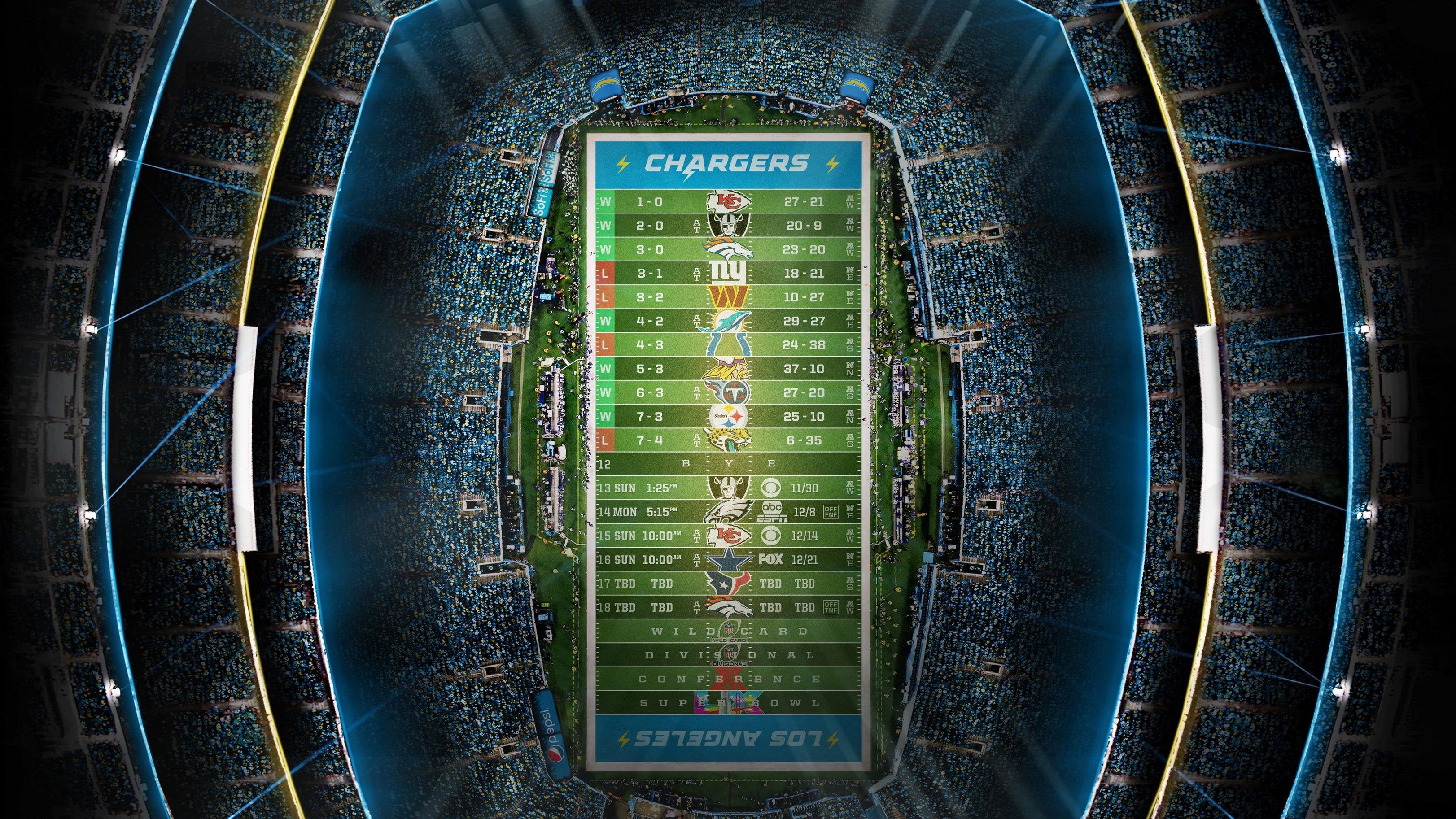 2025 – Stadium Schedule – Wk 11 – Chargers (7-4) 3 comments I like looking at this when we win and when we lose, I think of what could’ve been i just noticed the KC rematch is at 10am i know a lot goes into like defensive stops and special teams but basically if we score 20+ points…we win if we’re under 20 we lose lol Leave a ReplyYou must be logged in to post a comment.