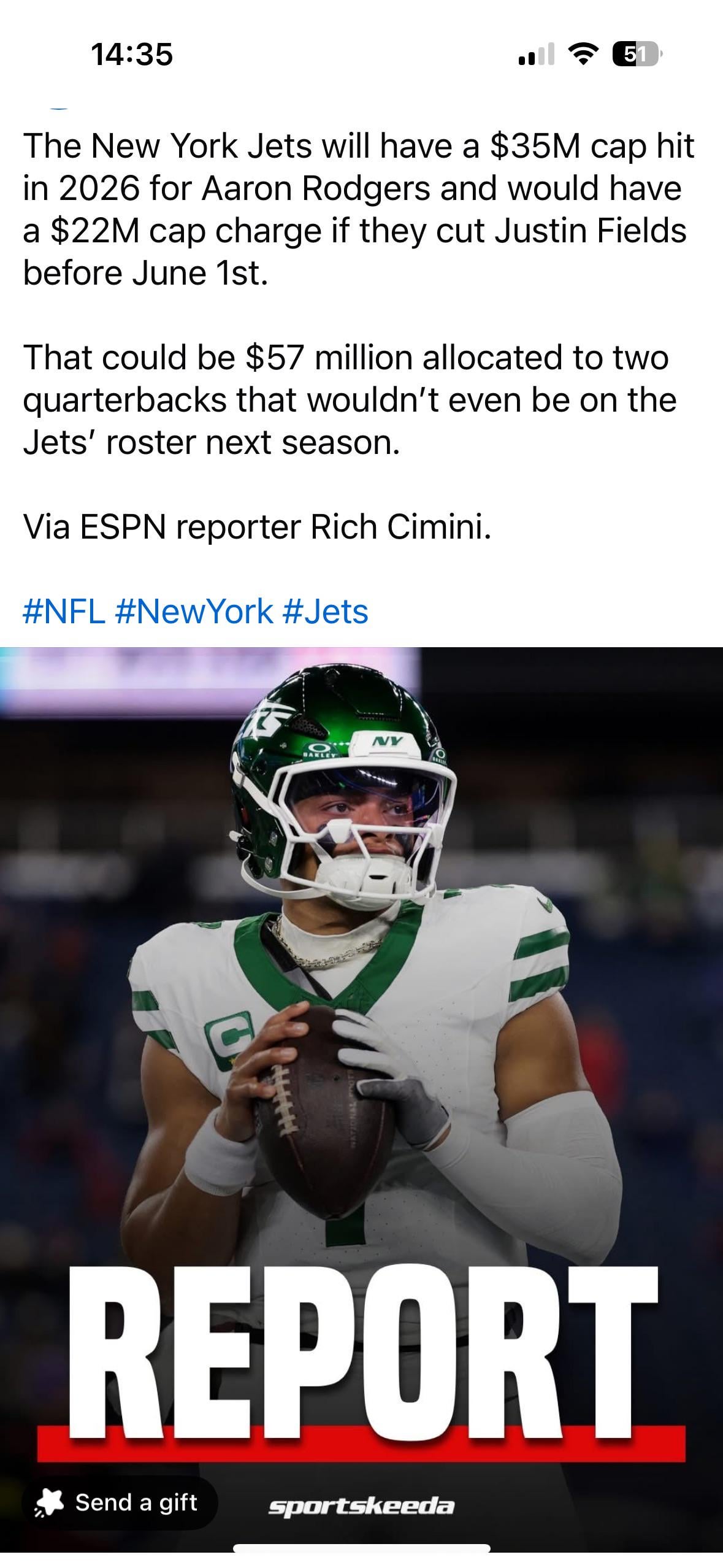 It’ll be a $13 mil cap hit if we cut him post-June 1, so it’s a total clickbait title that could have been almost as good if he went with $48 mil, which is what it will be. We paid Fields because he had other options (Steelers were interested in bringing him back, allegedly) and we had to outbid them.