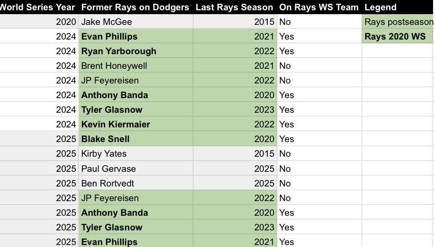 Six years ago, the Rays had their window to bring Tampa Bay its first World Series victory. The 2020 series saw the Rays facing one former Ray on the Dodgers. The past two seasons, the Rays failed to make the postseason or even end with a winning record. At the same time, 7 former Rays won a ring in 2024 and 8 in 2025. As easy as it is to blame the big budget teams for ruining baseball, cheap teams refuse to retain talent and cheating teams forced the big budget teams to literally win at any cost.