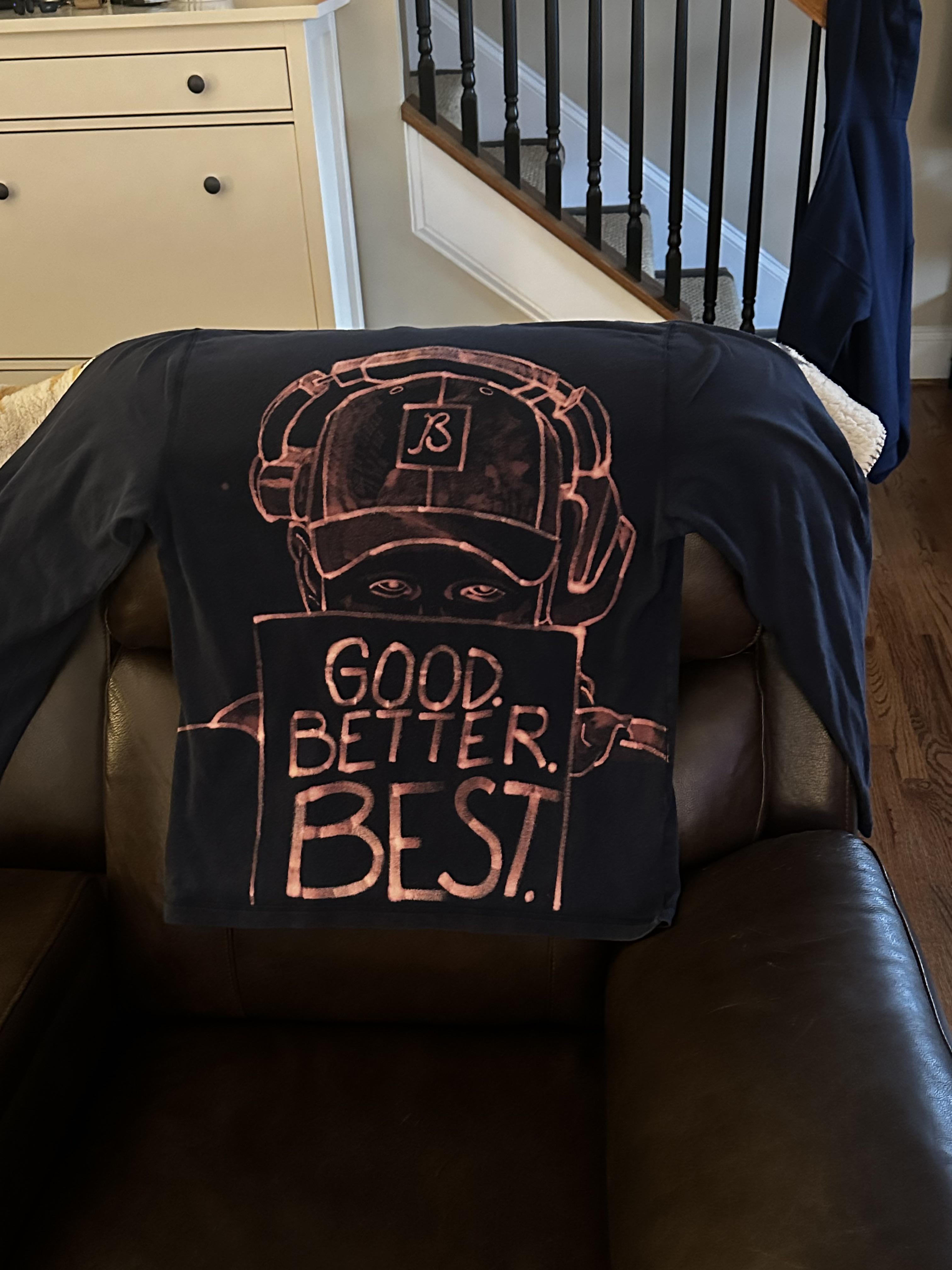My daughter made me a hoodie to wear to Sunday’s game. She drew the design w/ bleach. If you’re going to the game too and see me, say howdy!
