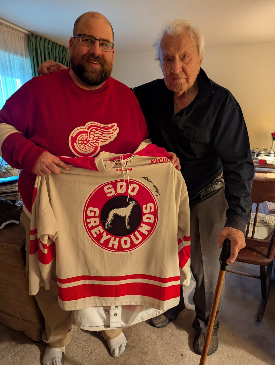 Someone asked about why he didn't end up on another team. He wasn't that big, and a lot bigger people were coming home from WWII and took his spot. He also atributes it to losing his line mate Don Grosso to a trade to Chicago. He said him an Don had amazing chemistry together. Interestingly enough, Don was born in the city Me and Mr. Wochy live. Here in Sault Ste. Marie.