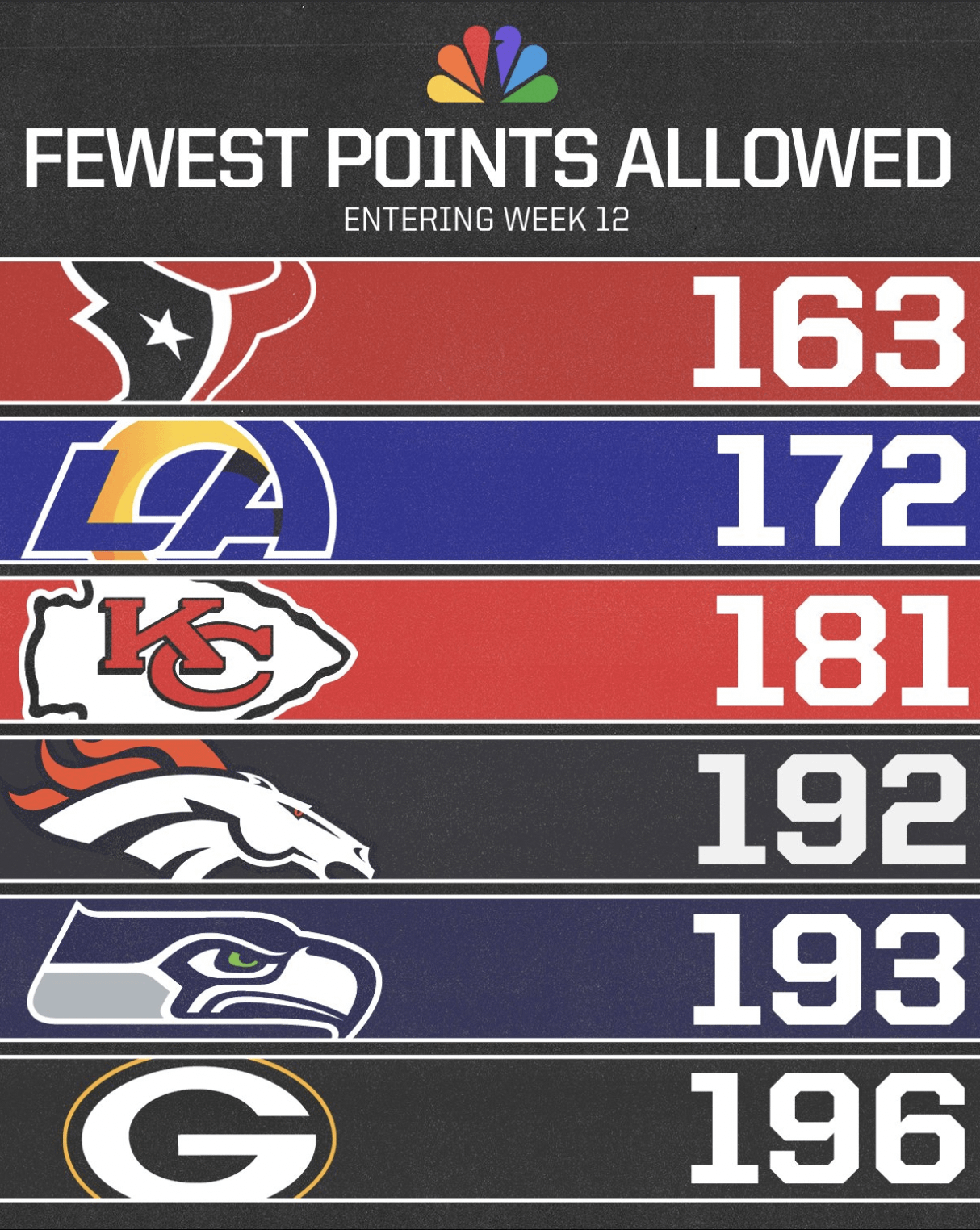 Raiders scoring Zero points kind of skews this stat to our favor. Bad team or not, shut outs are rare in this league.