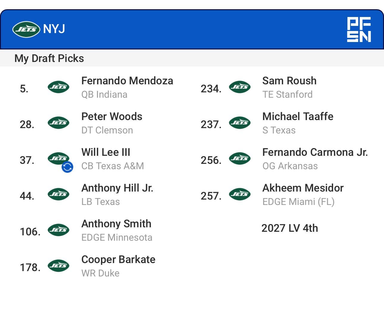 3. While it’s early, I see no scenario in which Mendoza is there at five. Somebody will definitely trade up to get him with whoever is picking ahead of the Jets.