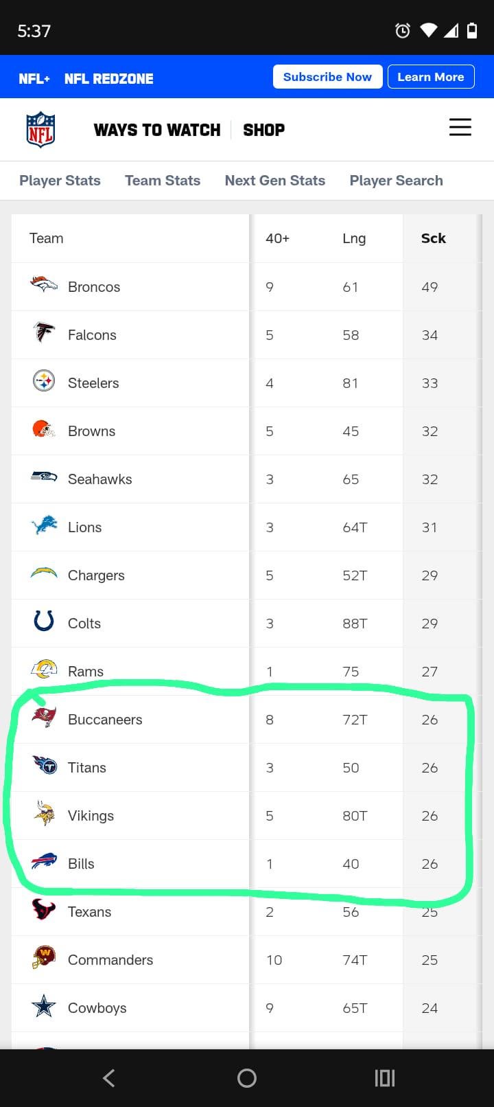 We have 26 sacks. We are tied for 10th best in the NFL. We are tied with the Vikings who have defensive genius Brian Flores.