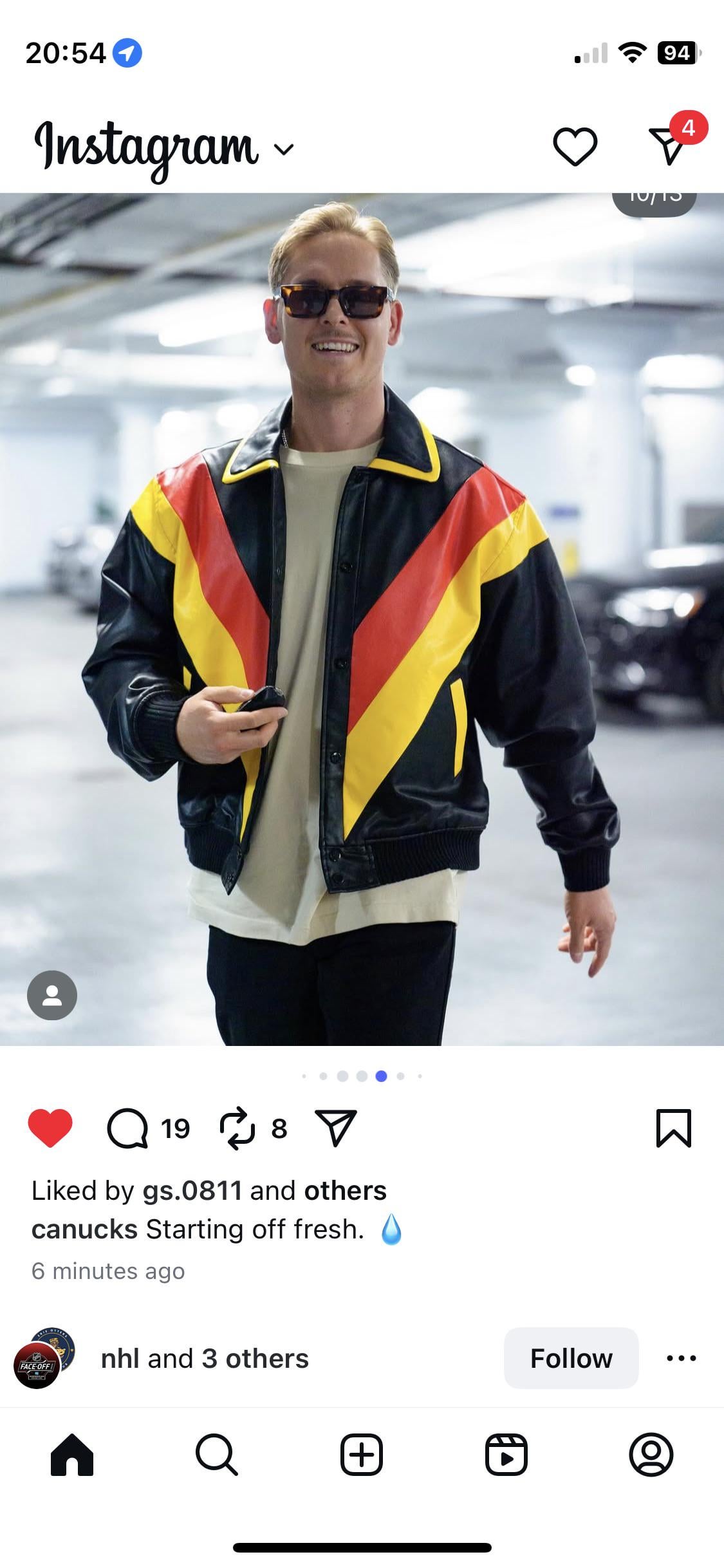 I can’t decide if the Flying V design is cool or ugly. It looks ugly on an actual jersey but it looks alright on that jacket but it’s probably because the zipper goes down in the middle and splits the V. It’s hard to explain.