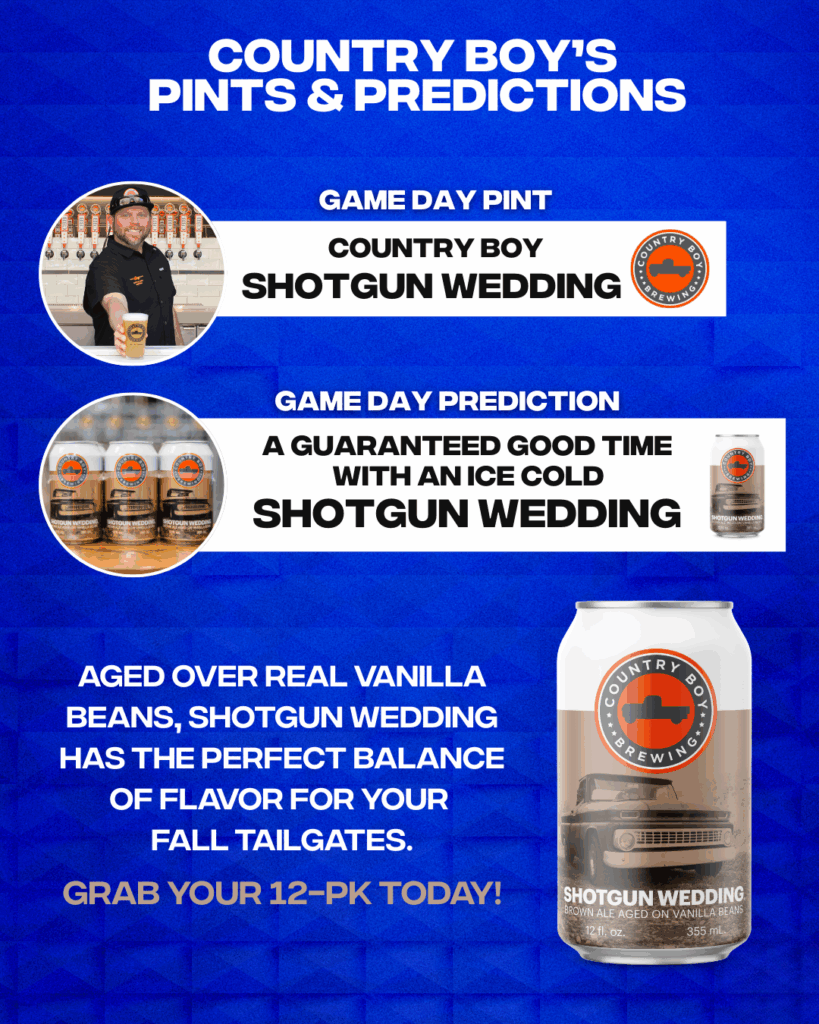 A guaranteed good time with an ice-cold Shotgun Wedding. Aged over real vanilla beans, Shotgun Wedding has the perfect balance of flavor for your fall tailgates.