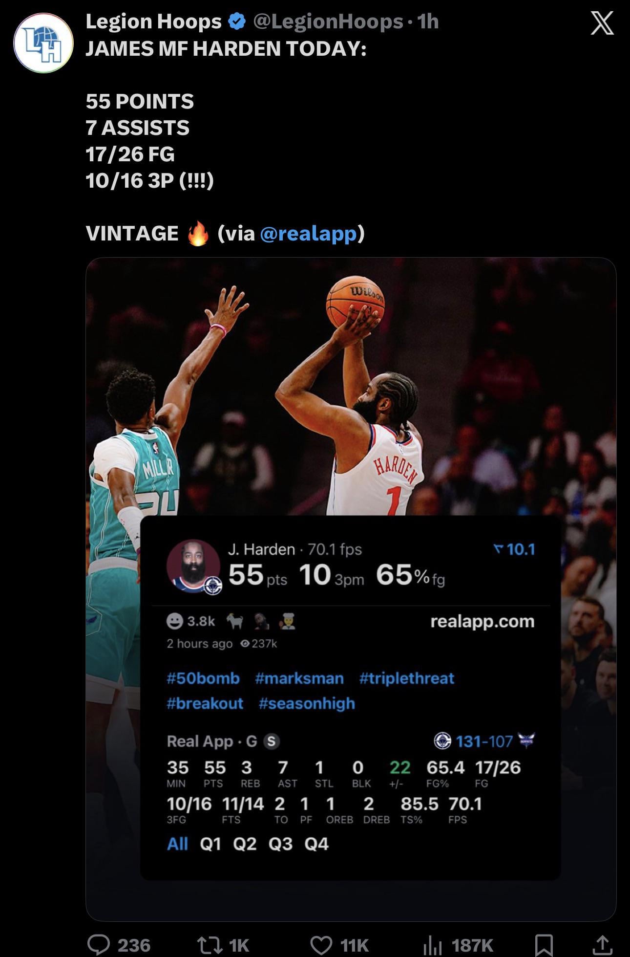 Vintage Harden showing up to make sure we don’t get a top 5 pick 😂