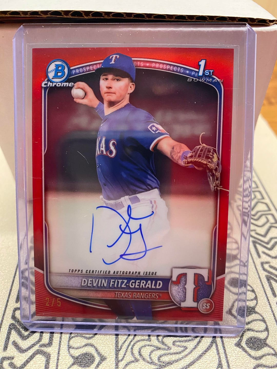 I pulled this great card today. Gerald Fitz-Gerald rookie auto bowman 1st team color match red refractor 2/5. Selling on eBay but willing to make a deal.