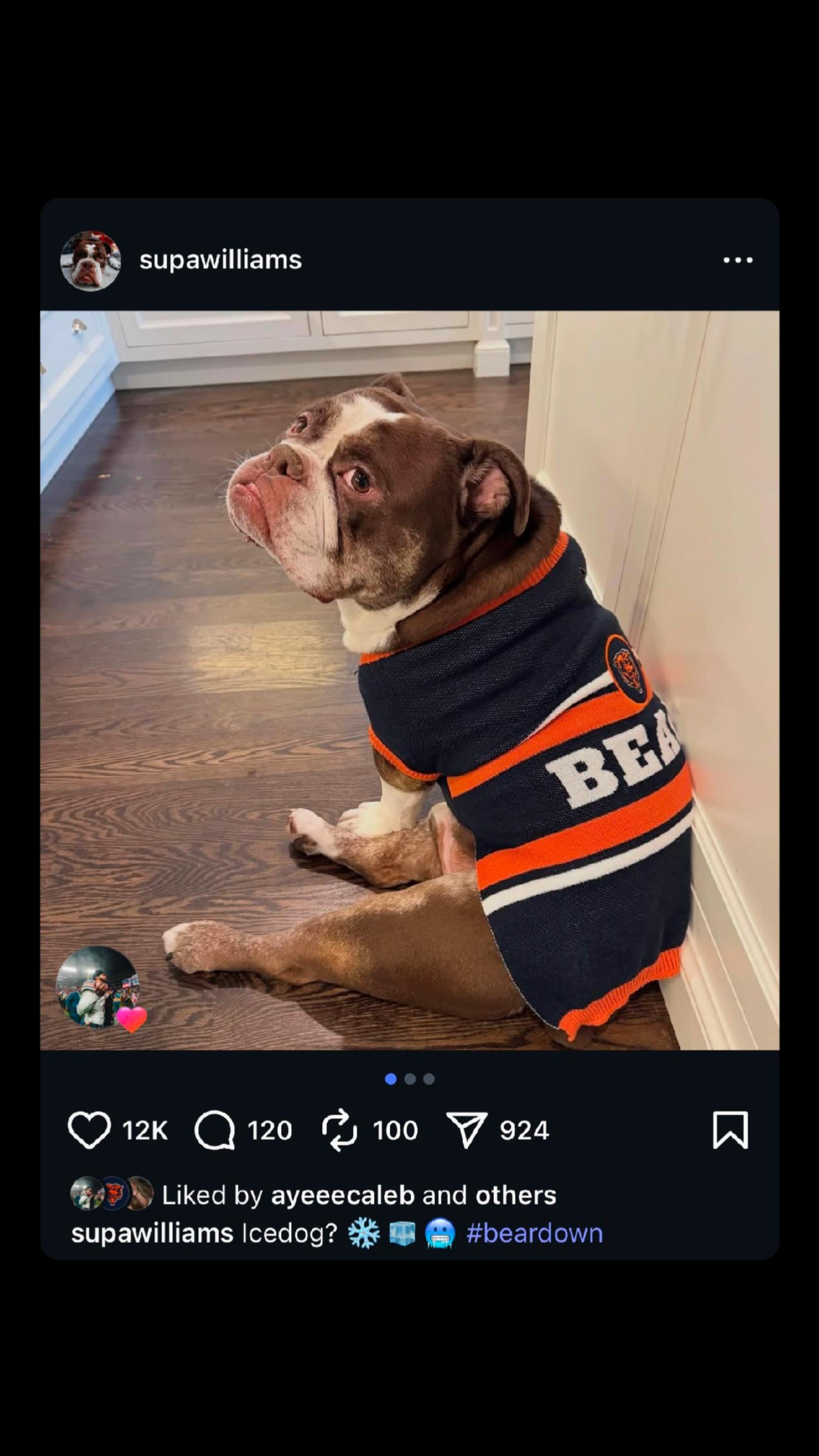 Supa Williams on IG 6 comments Can he play LB? This iceman stuff is so tough What the Bears showing a pitbull for go get a Bear 🐻 Looks like the best bears fan to me! Man i can’t stop laughing at the way he sits with his legs kicked out. He’s so damn cute So much swag Leave a ReplyYou must be logged in to post a comment.