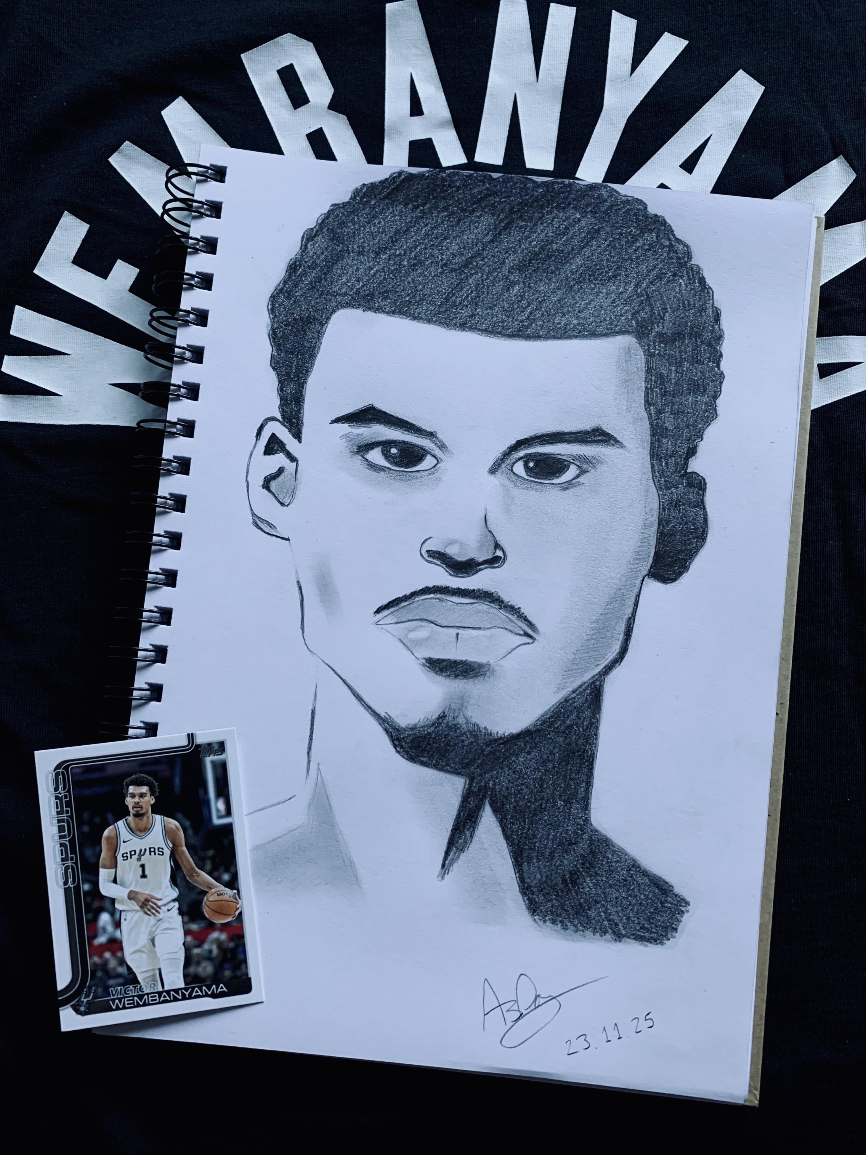 I love Wemby and love those awesome NBA Hoops Presentations cards (even if I’ll never afford to own the Wemby card!) I had some new pencils and felt inspired to put down some graphite for #1 5 comments Sickk (Doesn’t look like Wemby) But cool meng! xD Post-scriptum: Nice shadowing though, very cool. What kind of pencils are those? This is dope The weekend? 😂 Took like 3 hours to finish the shading on the upper lip Leave a ReplyYou must be logged in to post a comment.
