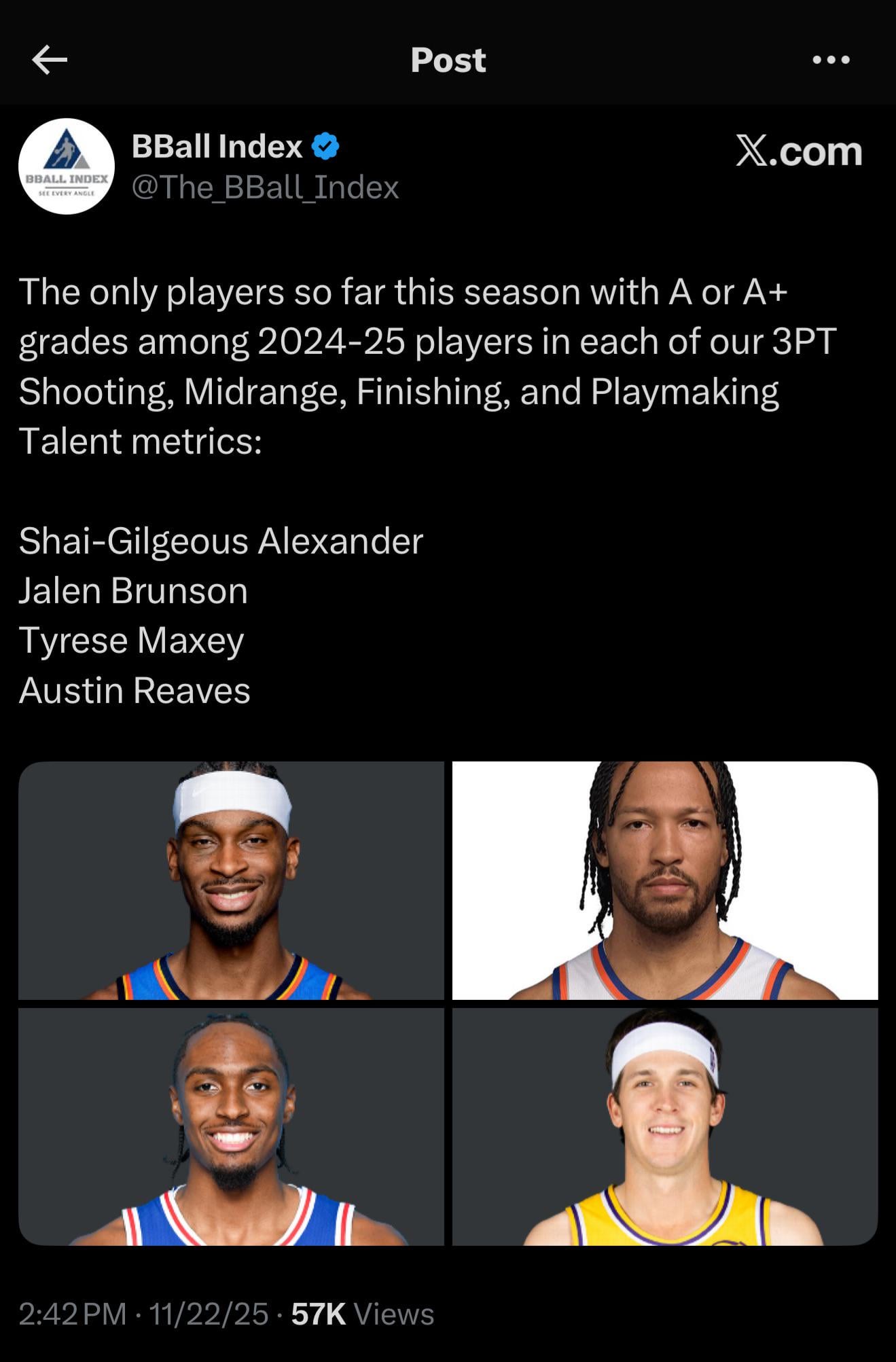 Love Reaves but this seems like a weird and bad metric overall. For something measuring 3P Shooting, Mid Range and Finishing talent over the last season, you’d assume a large part would be efficiency + volume.