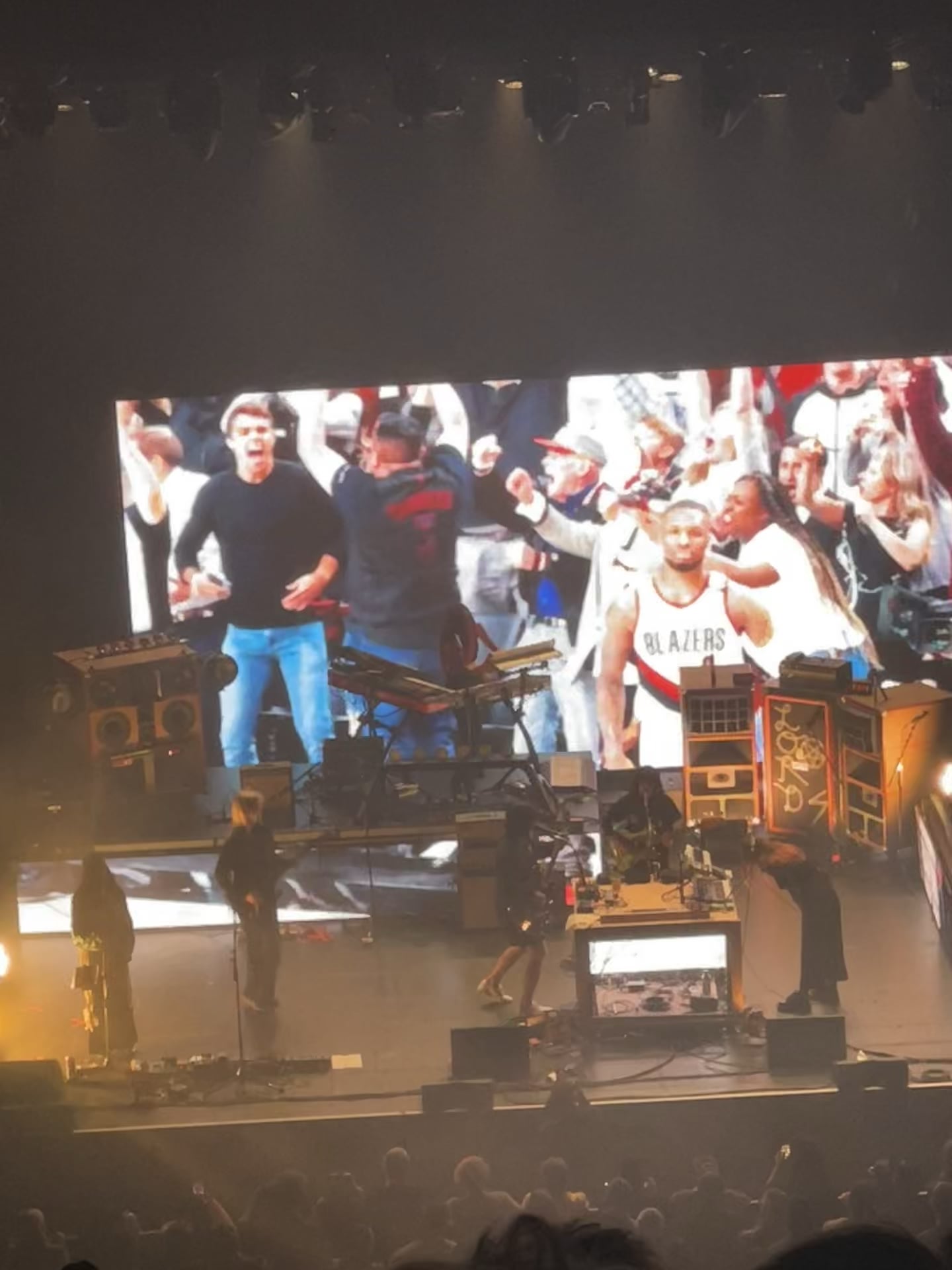 Went on a date to see Portugal. The Man, her choice as I don’t know their music. Cool moment of the show for me was when one of their songs opened with a dunk from Dame on the back screen. Seemed to be a mix of highlights of Dame, MJ, and some other basketball moments. Went on for a while and I managed to get my phone out to catch a few clips. Great surprise. Didn’t realize they were from Portland and had love for Dame like that.