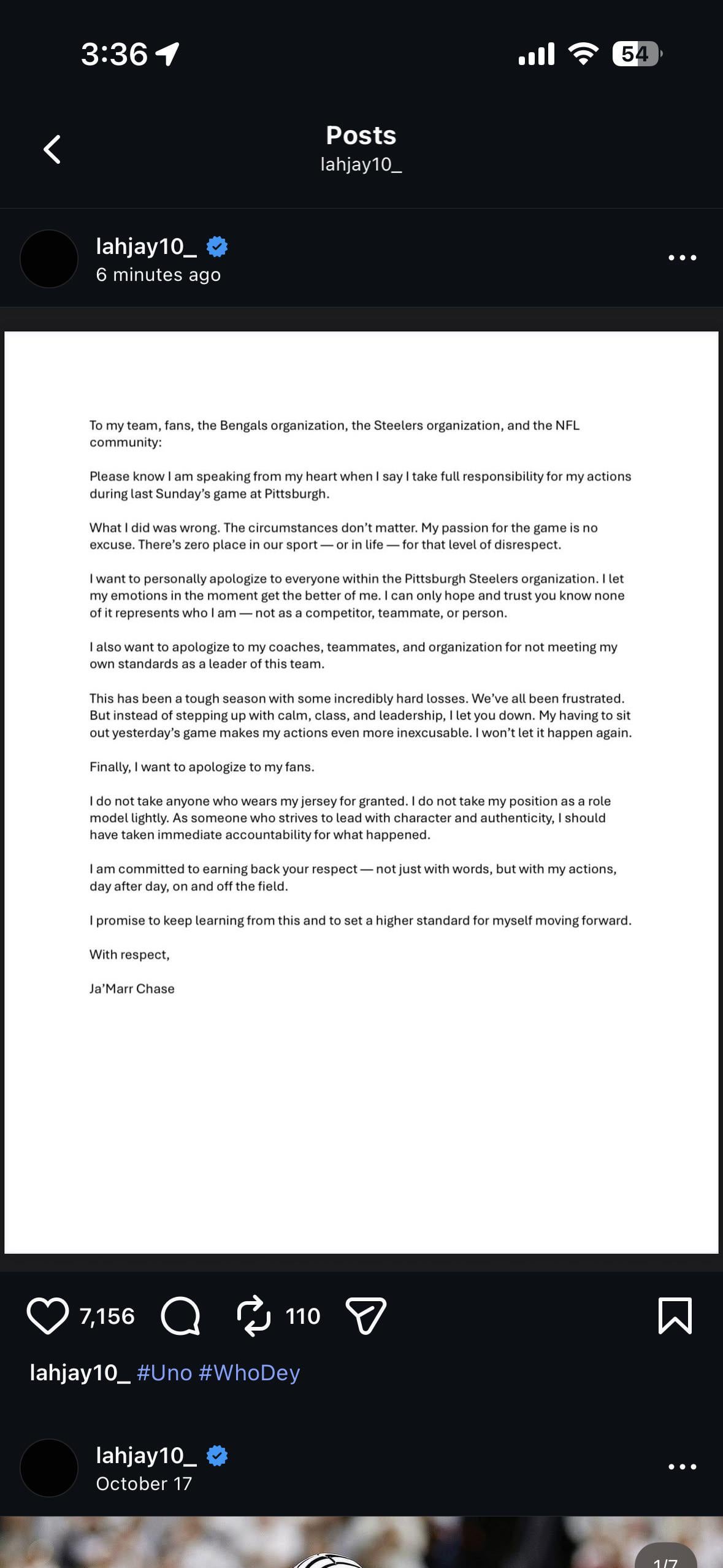 Notice that he doesn’t apologize to Jalen Ramsey. This reads like something that his agent and the Bengals suggested he do rather than something genuine.