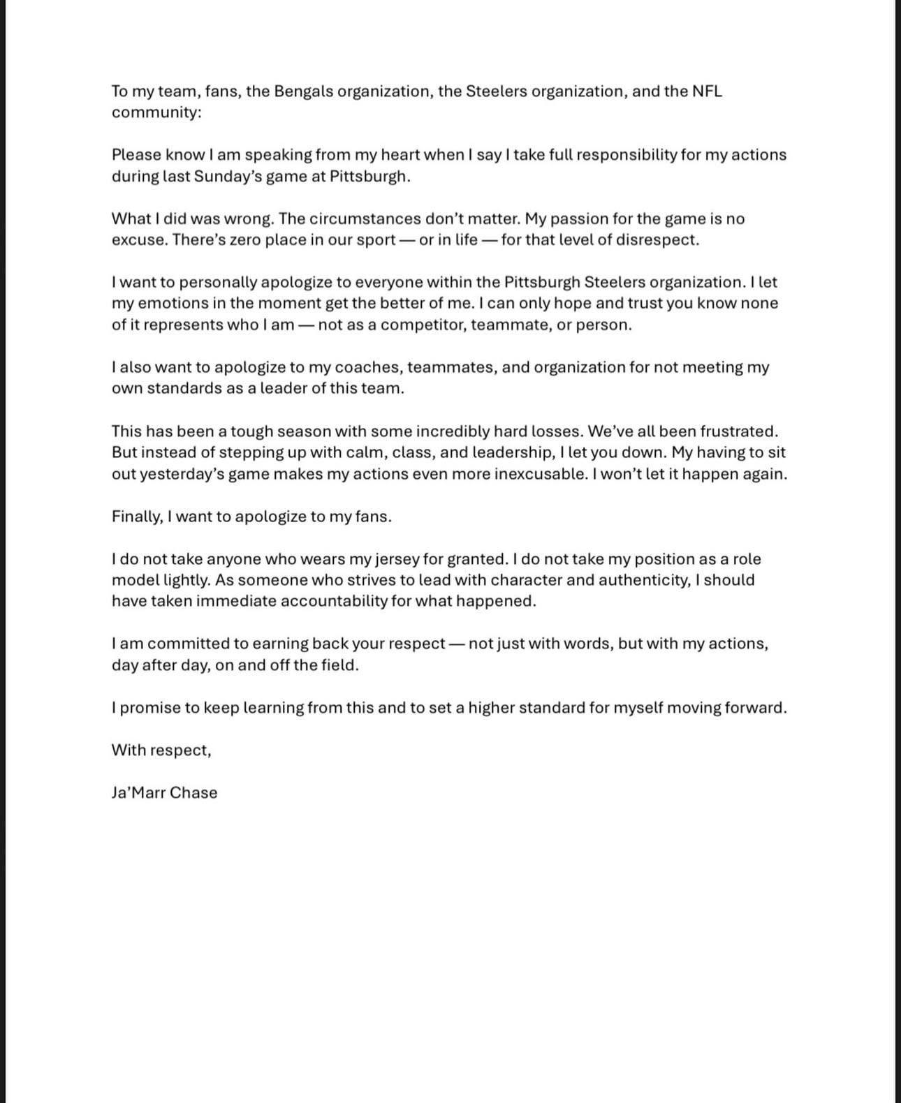 Ja’Marr Chase Apology