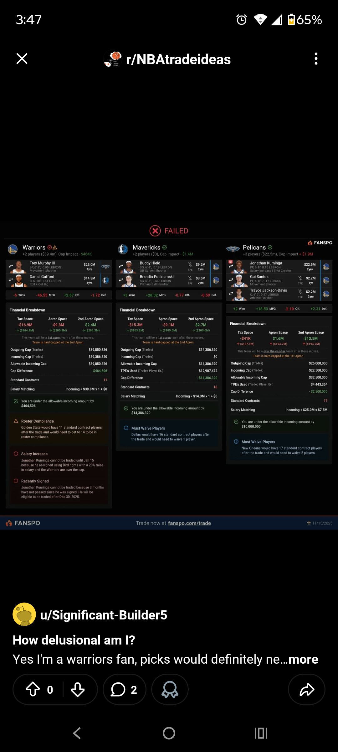 Pelicans need pick compensation , but at least the warriors fan acknowledges he’s delusional