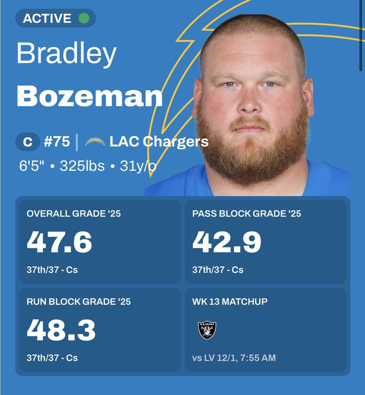 Joe Hortiz is a bumbling fucking moron. Look at how the Bears transformed their line in one offseason. Meanwhile Horitz was satisfied with 11 wins and Herbert getting abused in the post season. Fuck that clown.