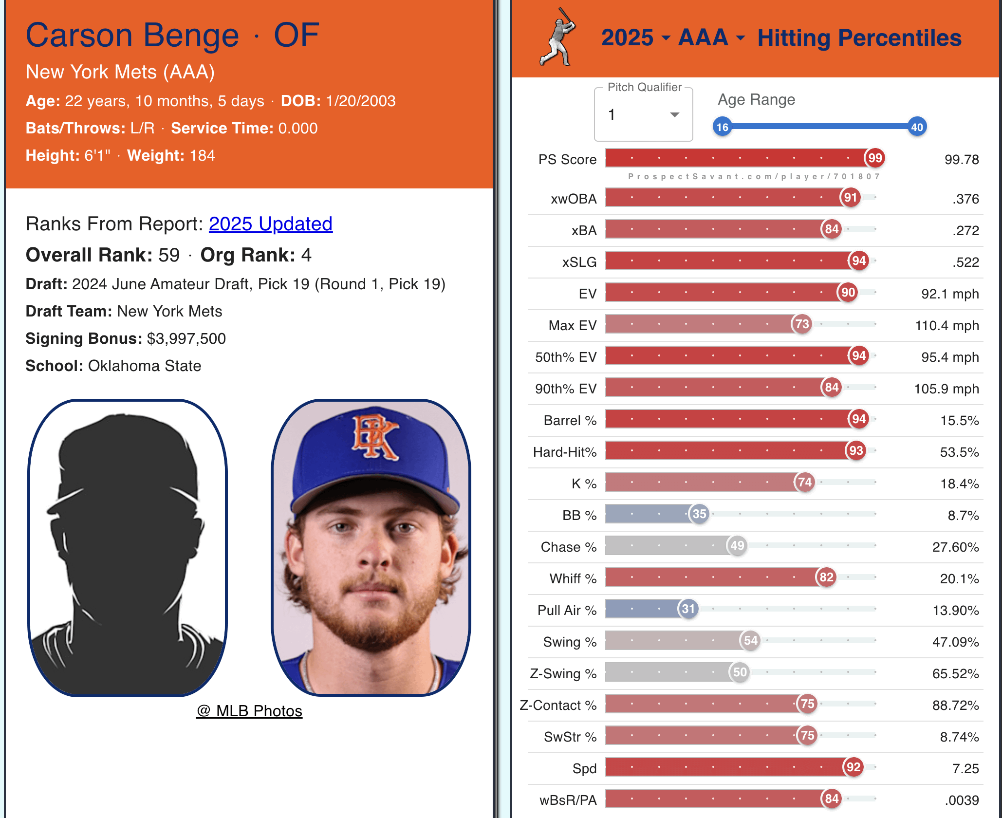 If you look at this same page for Jett, you’ll see why it’s very obvious the org is so high on Benge and clearly not as high on Jett.