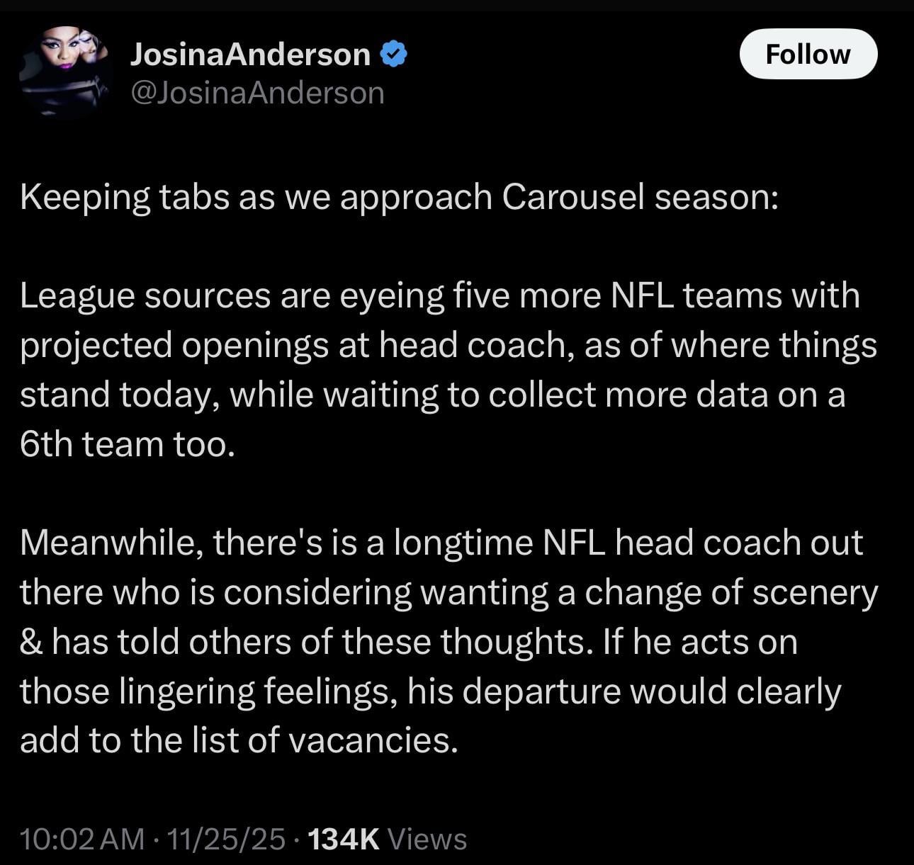 3. “Meanwhile, there’s is a longtime NFL head coach out there who is considering wanting a change of scenery”