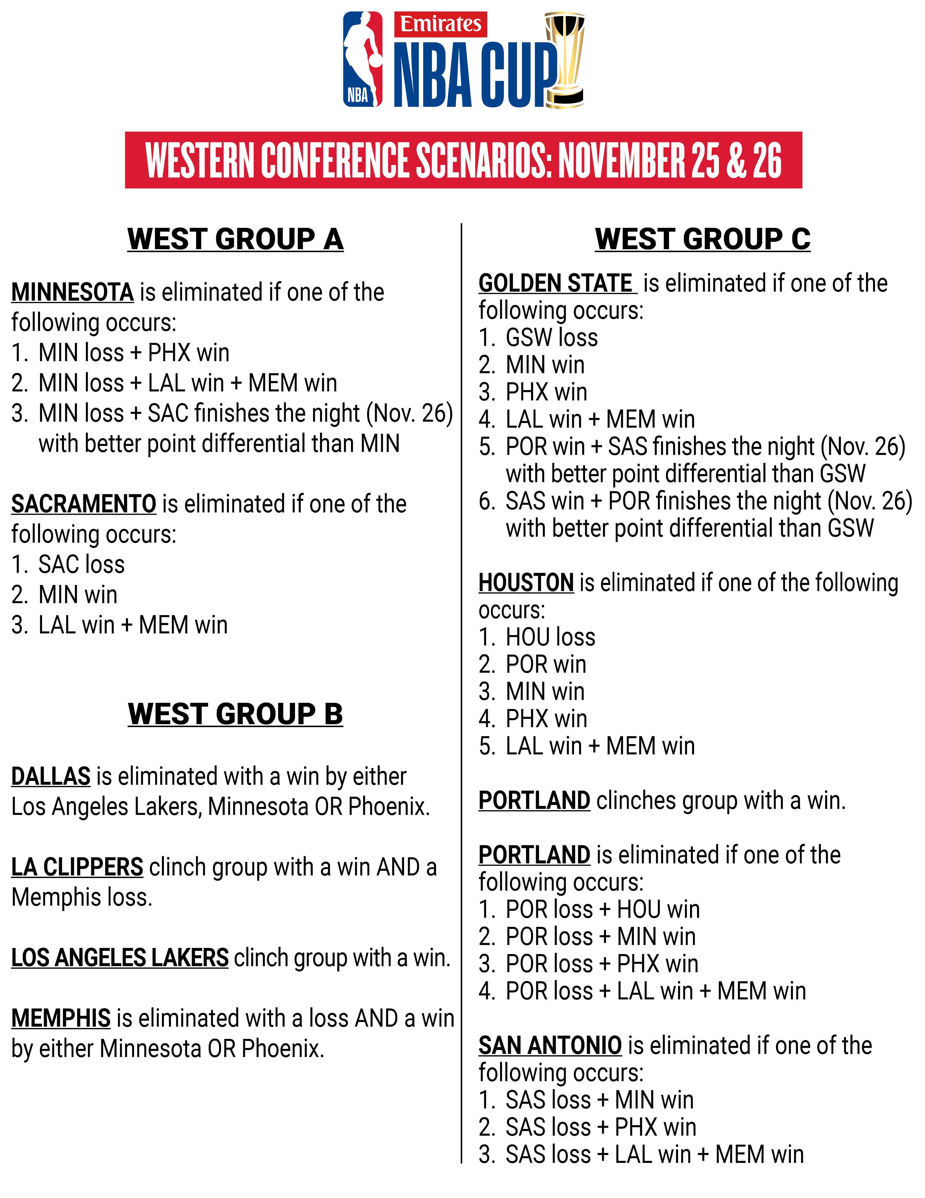Loss vs Portland could mean elimination from the Cup. Effectively have to win against Portland and the Nuggets to guarantee finishing first and qualification. The scenarios for the next game –
