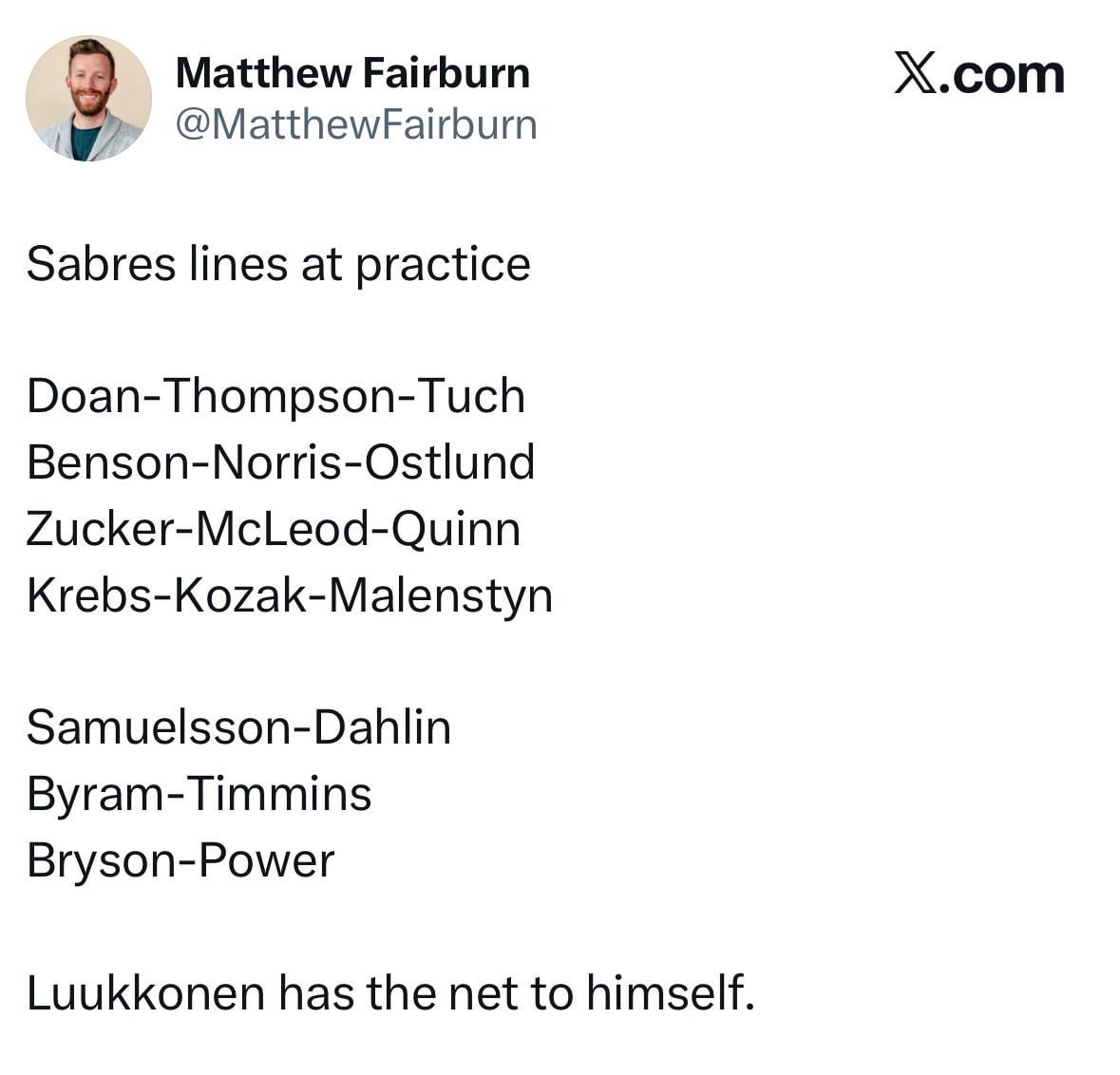 1. NGL that forward lineup is looking pretty nice with Norris back in the mix. Benson-Norris-Ostlund is a really fun line.
