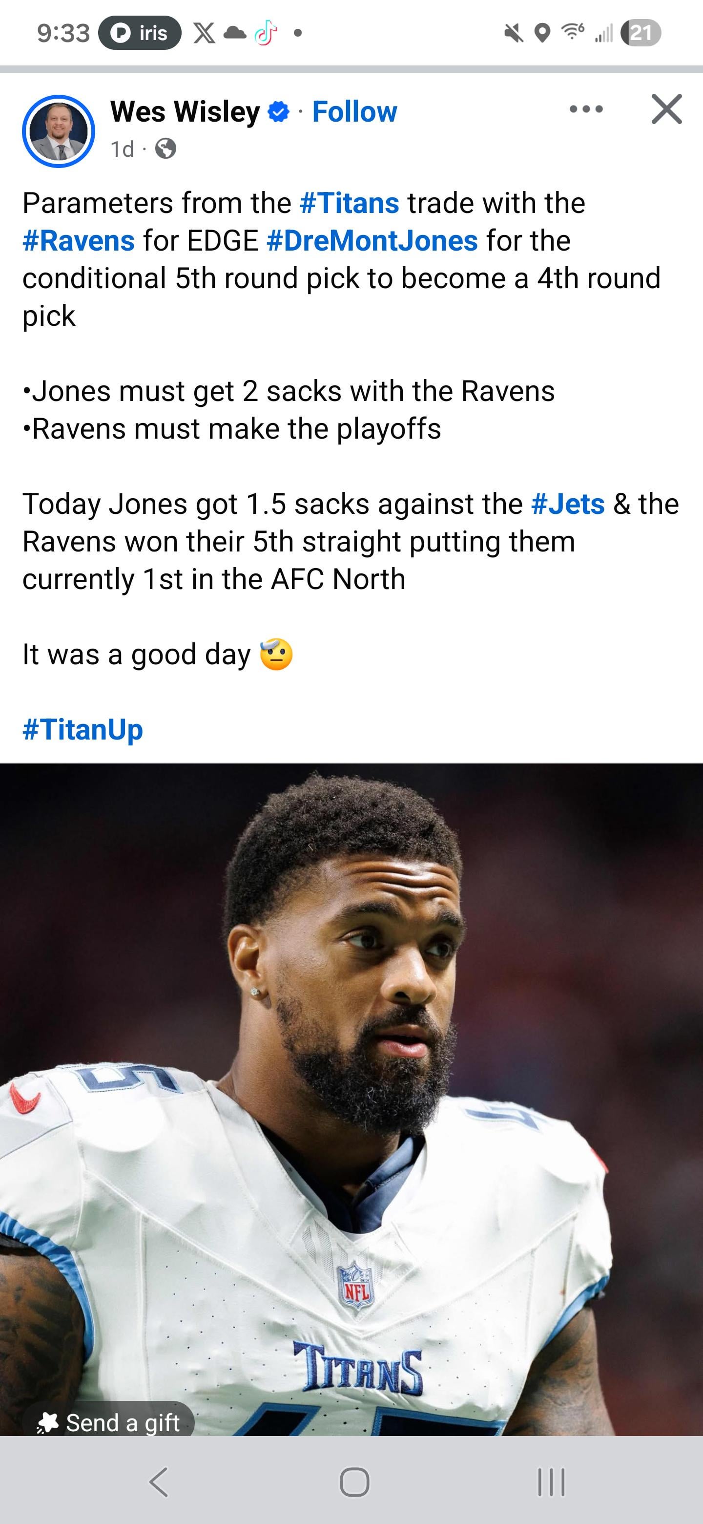 Titans are in a position where they’re pretty sure no FA with other options is going to sign here. So it’s smart by any metric.