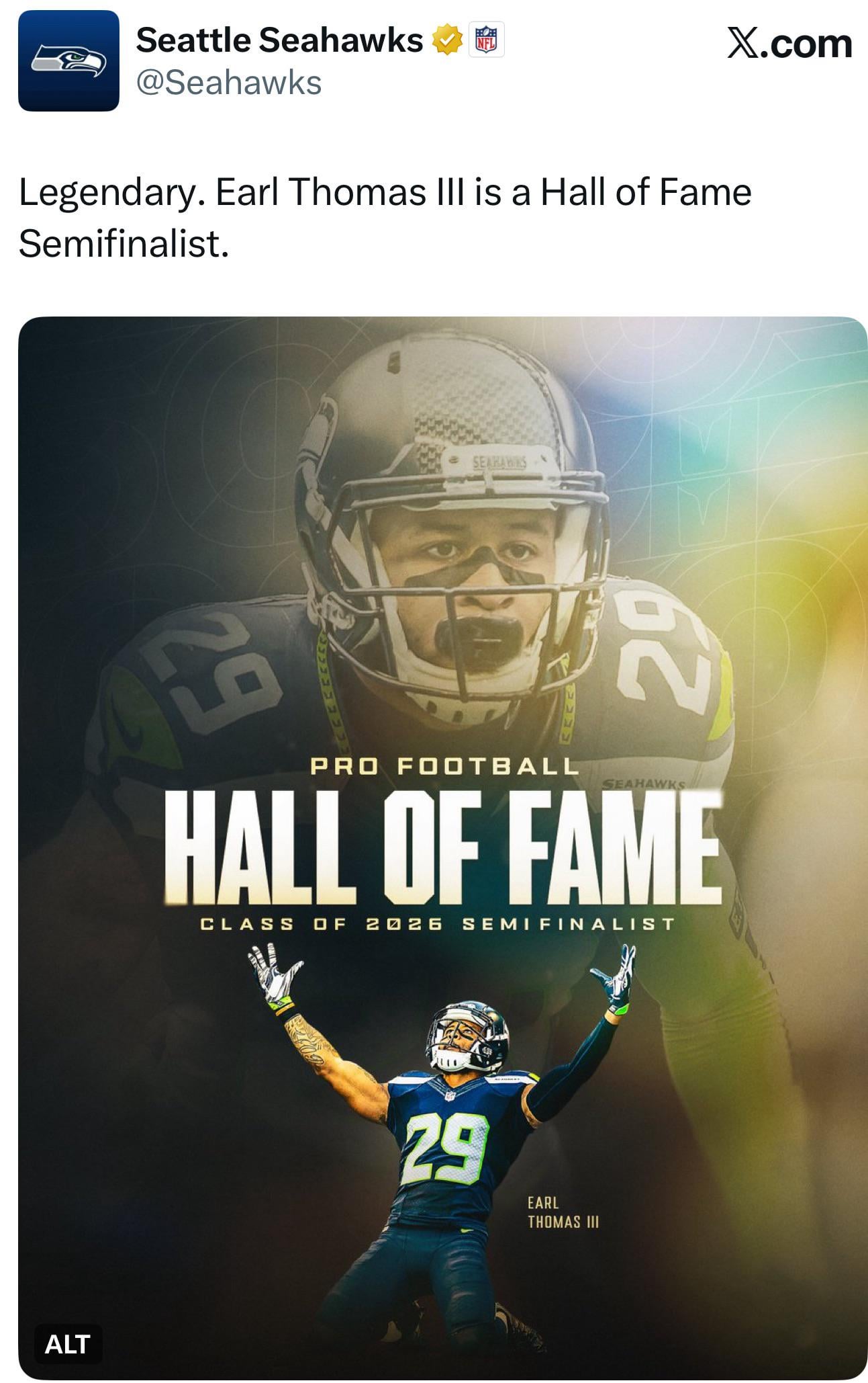 [Seahawks] Legendary. Earl Thomas III is a Hall of Fame Semifinalist.