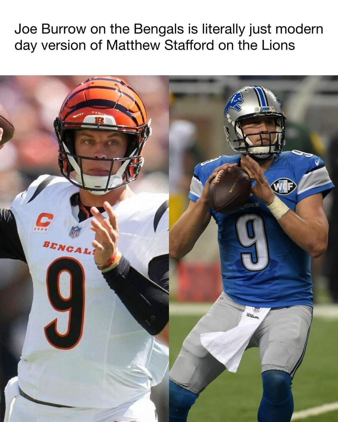 stafford never even won a playoff game with detroit. burrow made it to the SB one year and the AFC title game the next year and lost both games by a FG