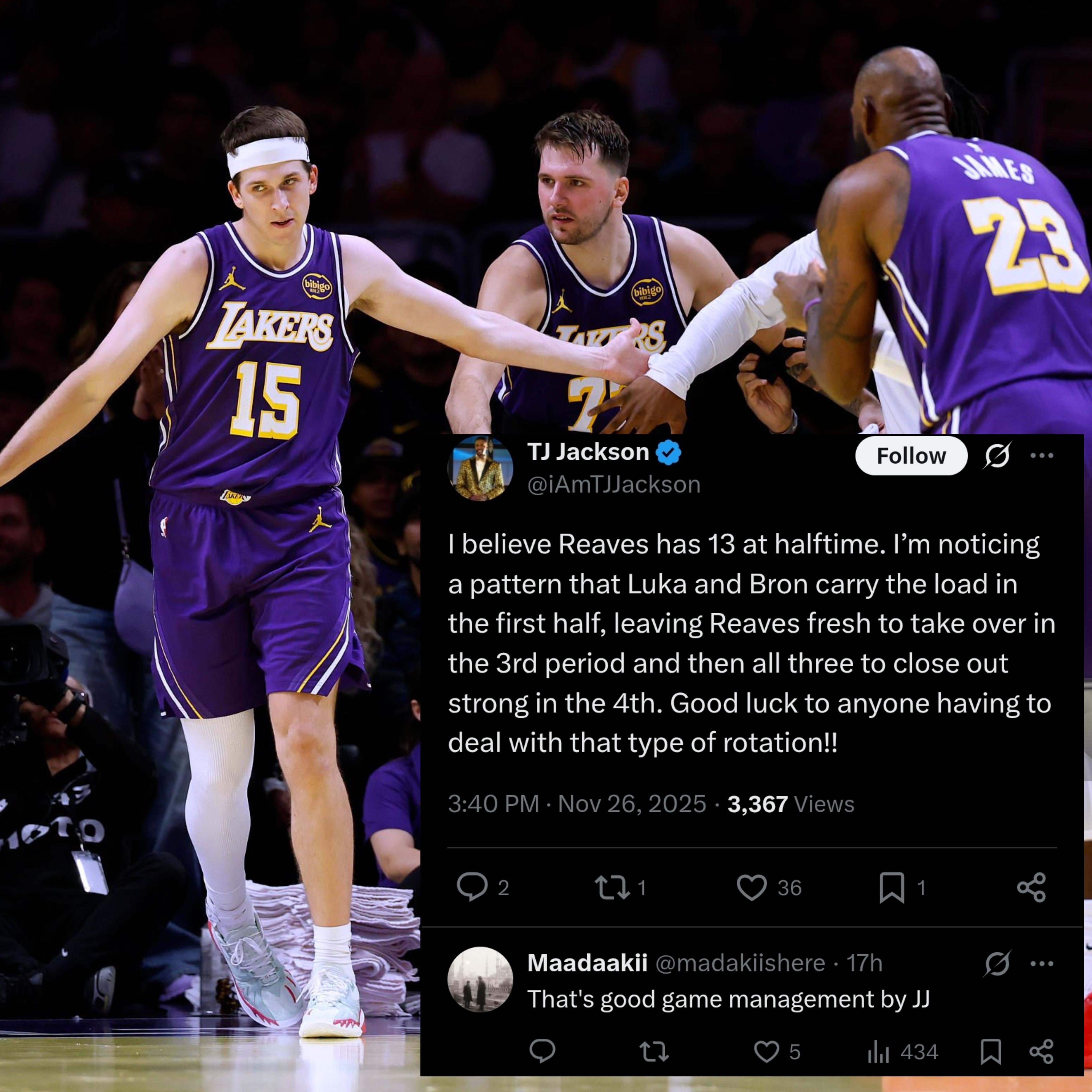Combined arms warfare Lakers. Luka is your air strikes and artillery for shock and awe. Reaves is your light infantry blitzing in. Then Bron is your Armor units coming in for support