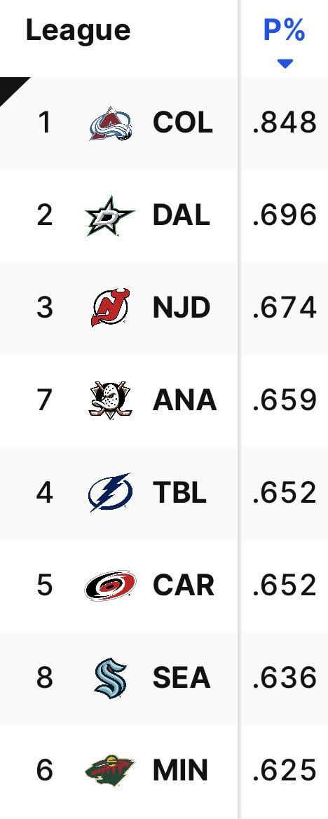 While the avs are doing great, and they lead in all stats anyway… the nhl introduced the losing point to keep everyone invested as the 4th league in the league. Most the teams are close right now.