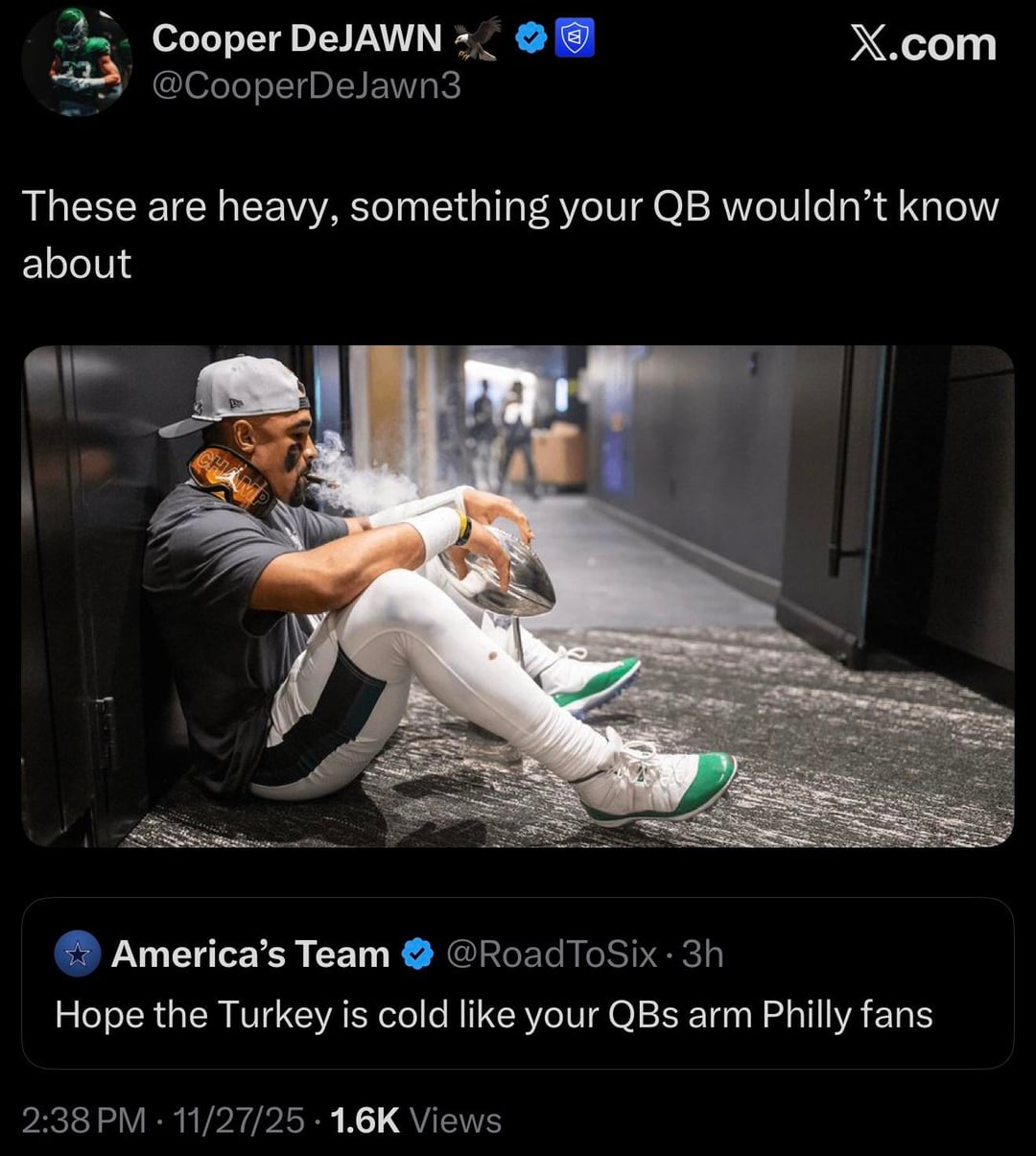 Weve been to the same amount of Super Bowls with Hurts the last few years as the Cowboys have playoff wins with Dak over the last like 10 lmao.