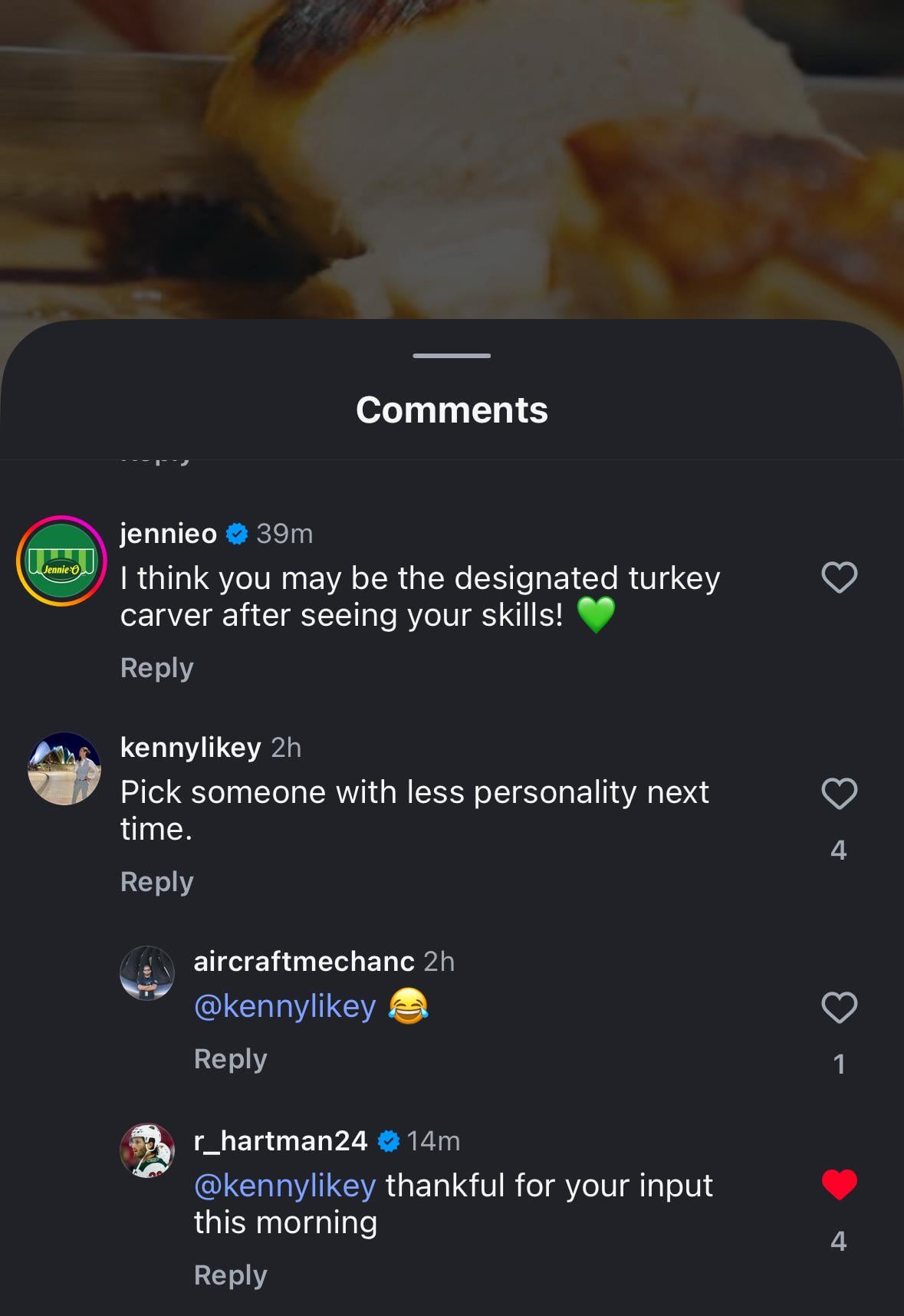 Itβs from the MN Wild Instagram. Itβs a video of Ryan carving a turkey. Kenny was not entertained.