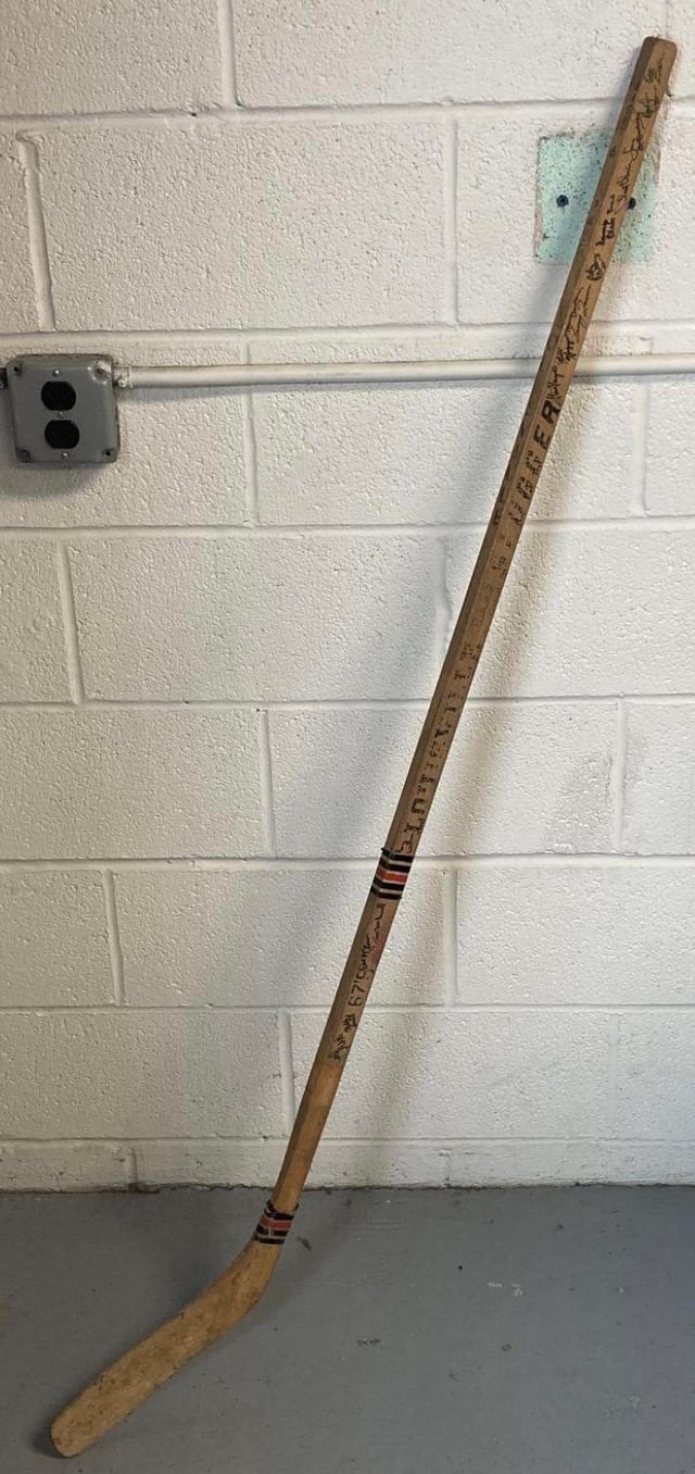 The Sabres were established in 1970, so if this stick was signed in years ’66-’69 then the signatures may be from the Buffalo Bisons hockey club players. I’m not sure how many, if any, records exist of the Bisons rosters/players.