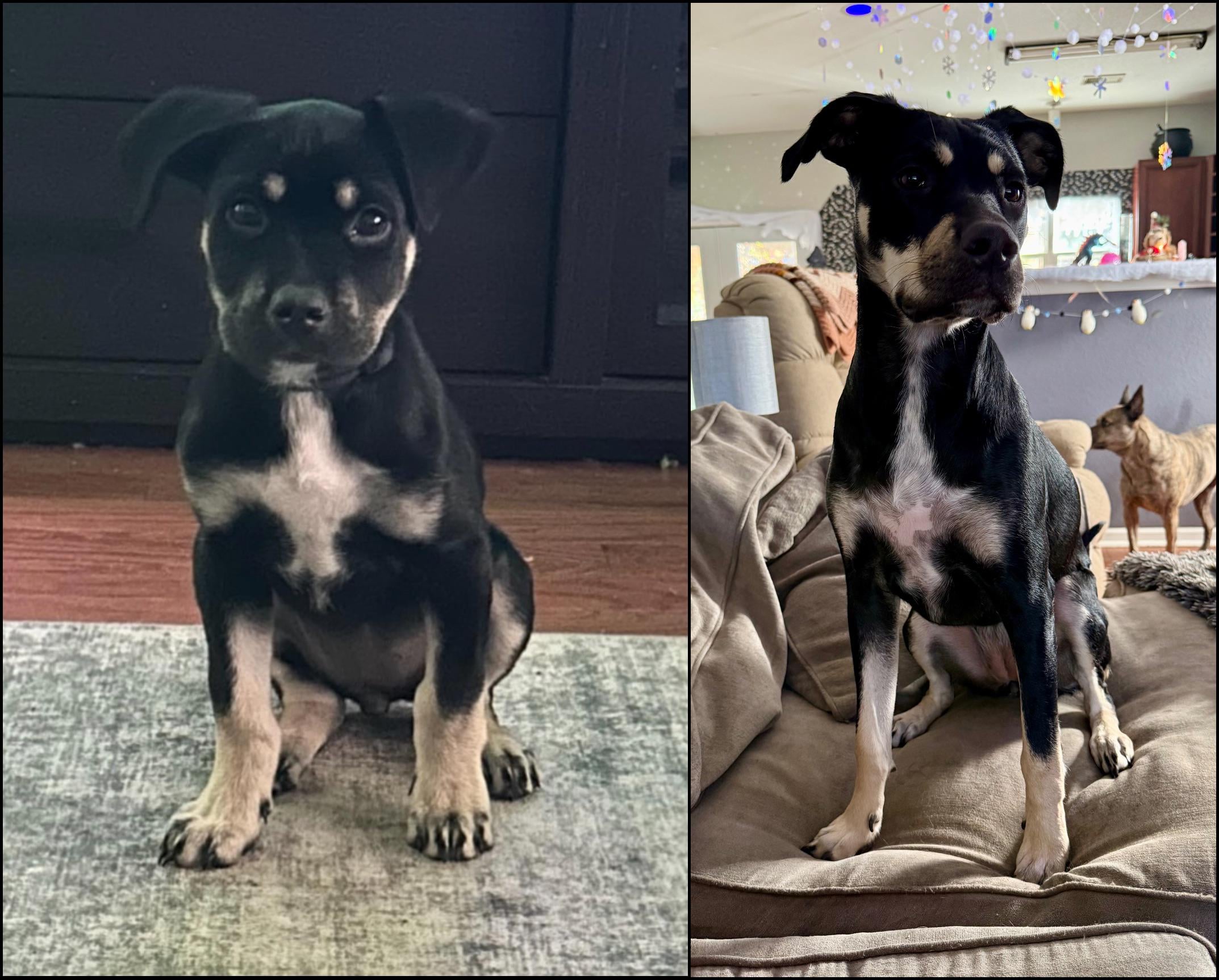 I posted a photo of this sweet little girl that my wife and I adopted earlier this year. We named her Nola (like we had a choice) because of her black and gold coloring and almost perfect fleur-de-lis on her chest. She turned 1 yesterday and got spoiled rotten with grilled steak, treats, and new toys.