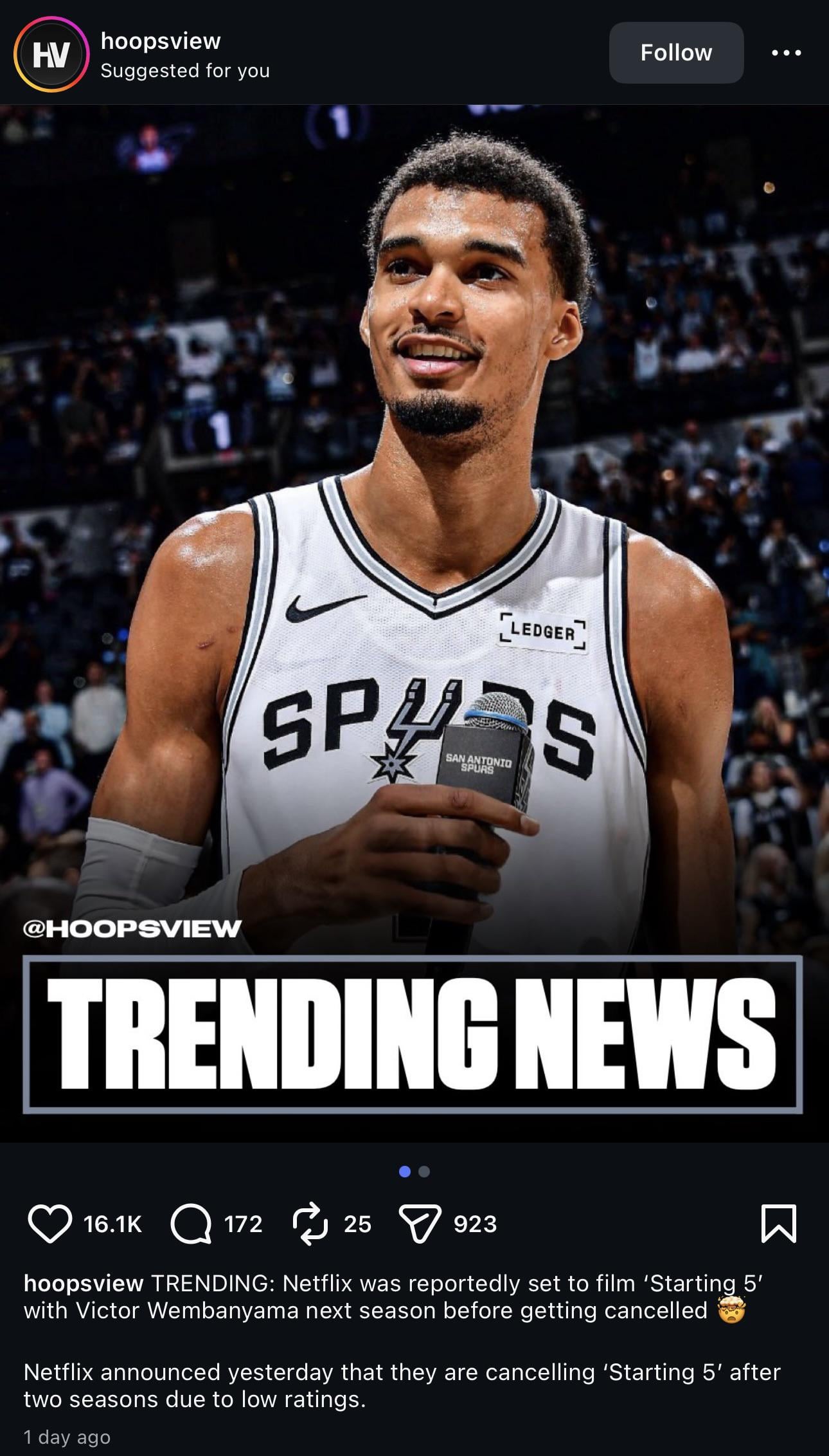 I’d love to see a documentary about wemby, especially the ‘inside’ when he got drafted, his first season with pop, when he got injured in the 2nd season, etc.