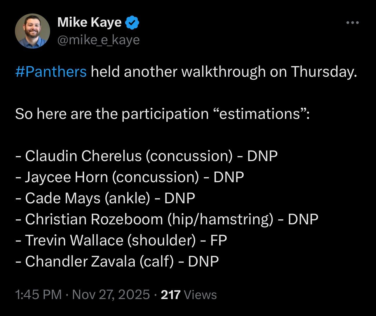 Happy Thanksgiving everyone! 10 comments Thankfully our bye is next week what’s the o line looking like this week? What does this indicate when they’ve held two walk through practices in a row before the best team on our remaining schedule Bryce legacy game incoming Not good. Not good at all. Please Cade our short king needs you 🙏 rams bout to rest half of their starters bro Considering we really need most of that list, that isn’t exactly great. I dread this Sunday Welp, this is gonna suck. Leave a ReplyYou must be logged in to post a comment.