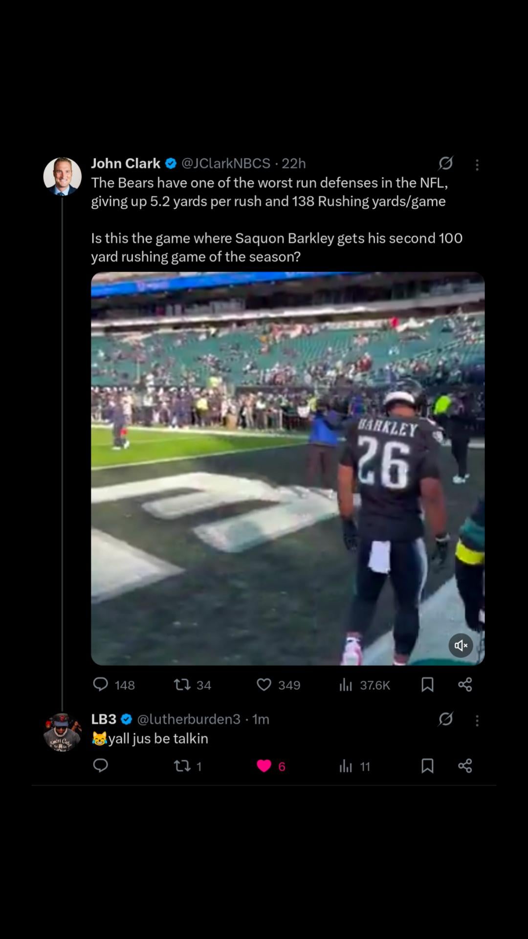 No one should blame John Clark for what he said. Those are true stats. Sirianni/Patullo are idiots for not attacking the Bears defense in the run game. They had 0 starting LBs. Some were 3rd stringers. It’s mind blowing that Barkley didn’t have at least 25 carries that game. They aren’t the smartest guys in the room, they succeed because of talent.
