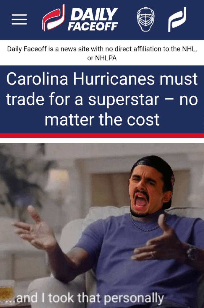 The canes have elite players, they just aren’t considered “superstars” because it’s a small market team. Last two times the Canes went after “superstars” they promptly left ASAP.