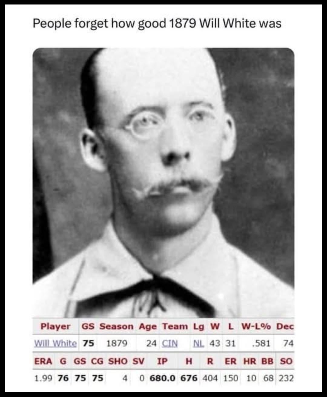 Will White was no Old Hoss Radbourn, I’ll tell ya hwat. White threw underhanded while Hoss Radbourn had to throw overhand like a *real* man