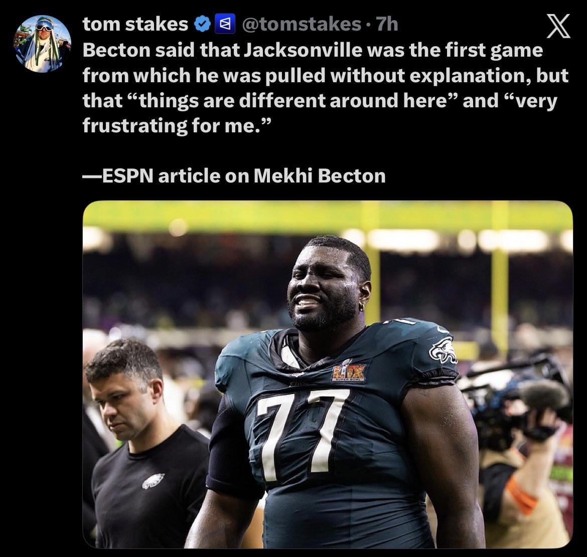 I could see a scenario where Becton ends up with the eagles again. It may not be for a few years but I could see it happening if steen doesn’t work out long term. Steen has been serviceable for the most part