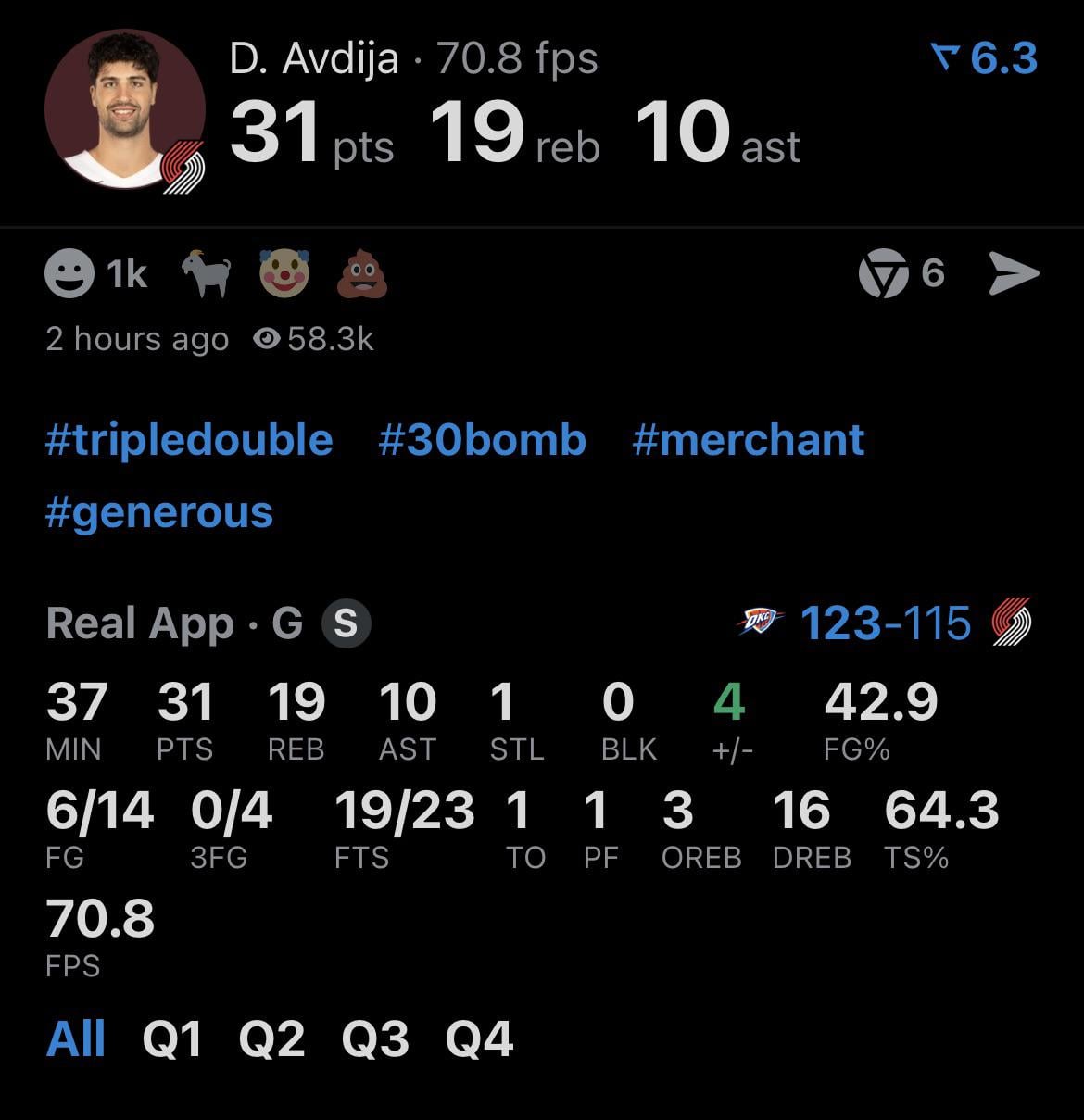 Deni is kind of a problem. I think defenders sometimes underestimate him even though heโs surely on the scouting report. I never watch Portland outside of games vs us but his ability to drive and kick generates a lot of their offense and at 6โ8โ he can move better than you expect.