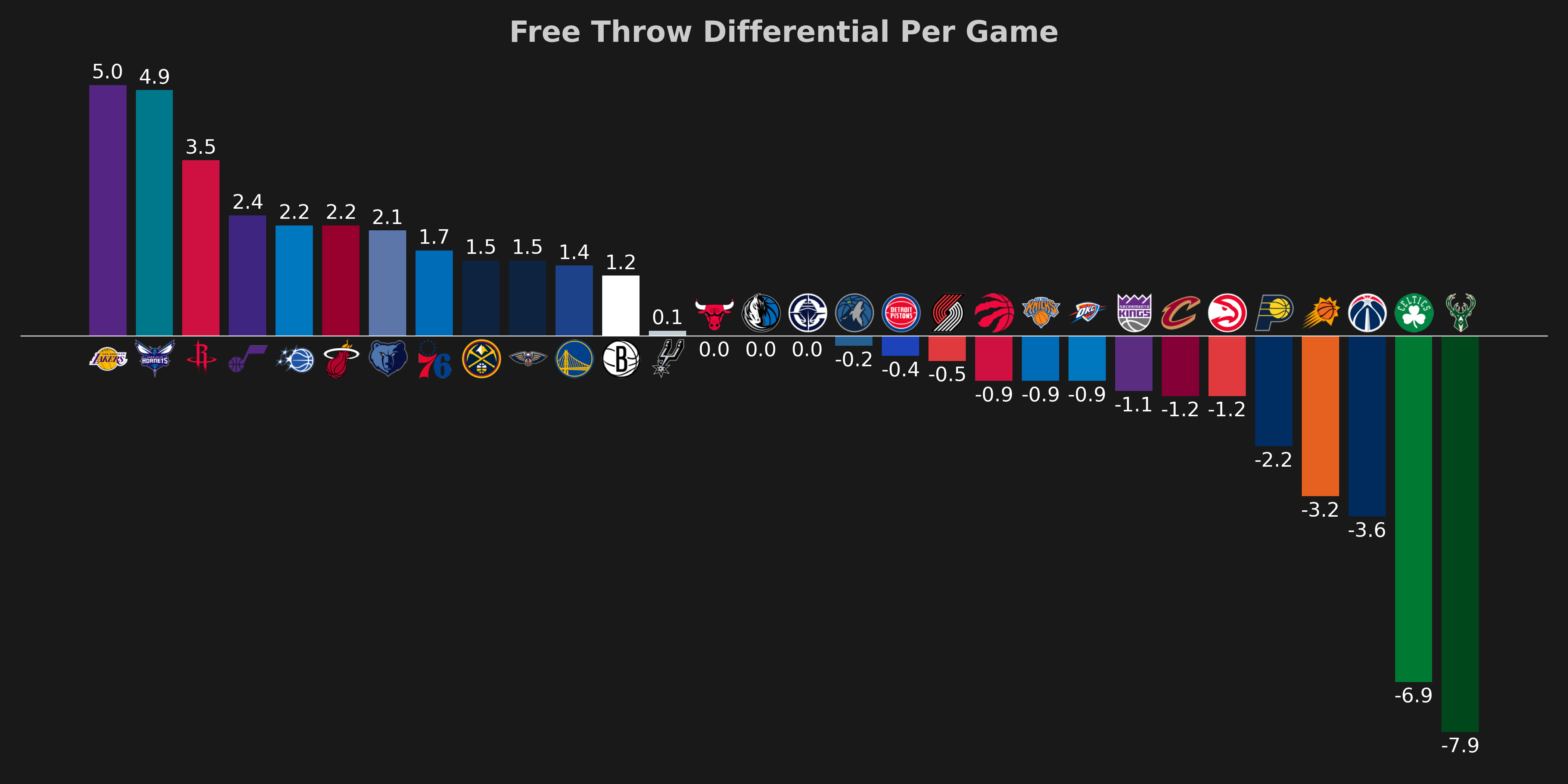 From the NBATalk community on Reddit: NBA Free Throw Differential Per Game