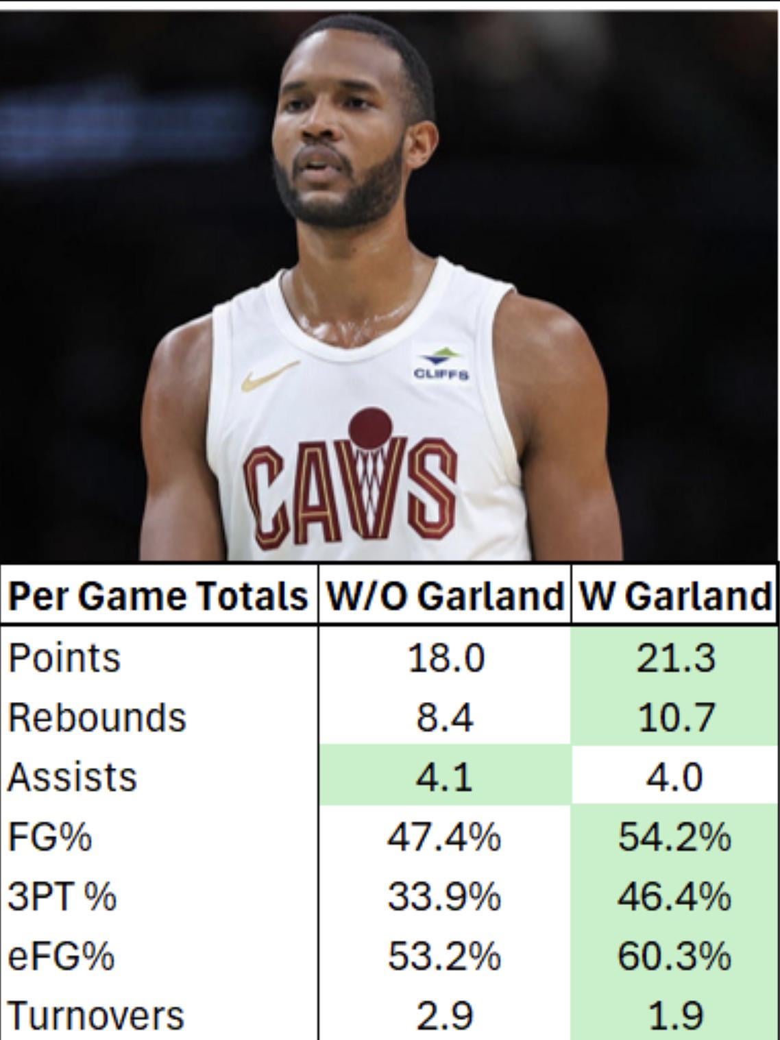 In an effort to not be a doomer, one thing that's been a positive this year is that Mobley is playing really well offensively in games with Garland in the lineup.