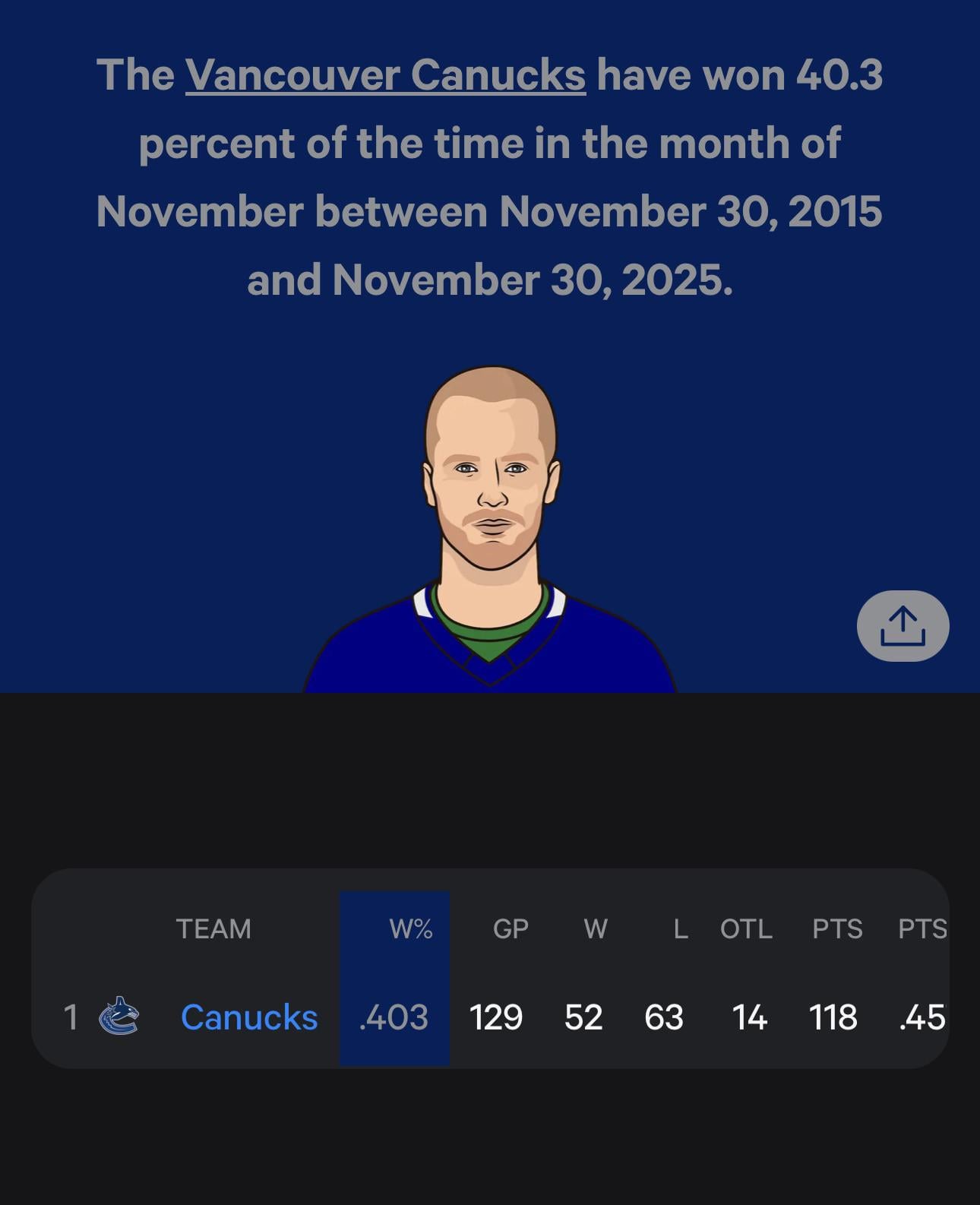 there’s a reason why the canucks have been terrible in that time span, and that includes in November and October too.