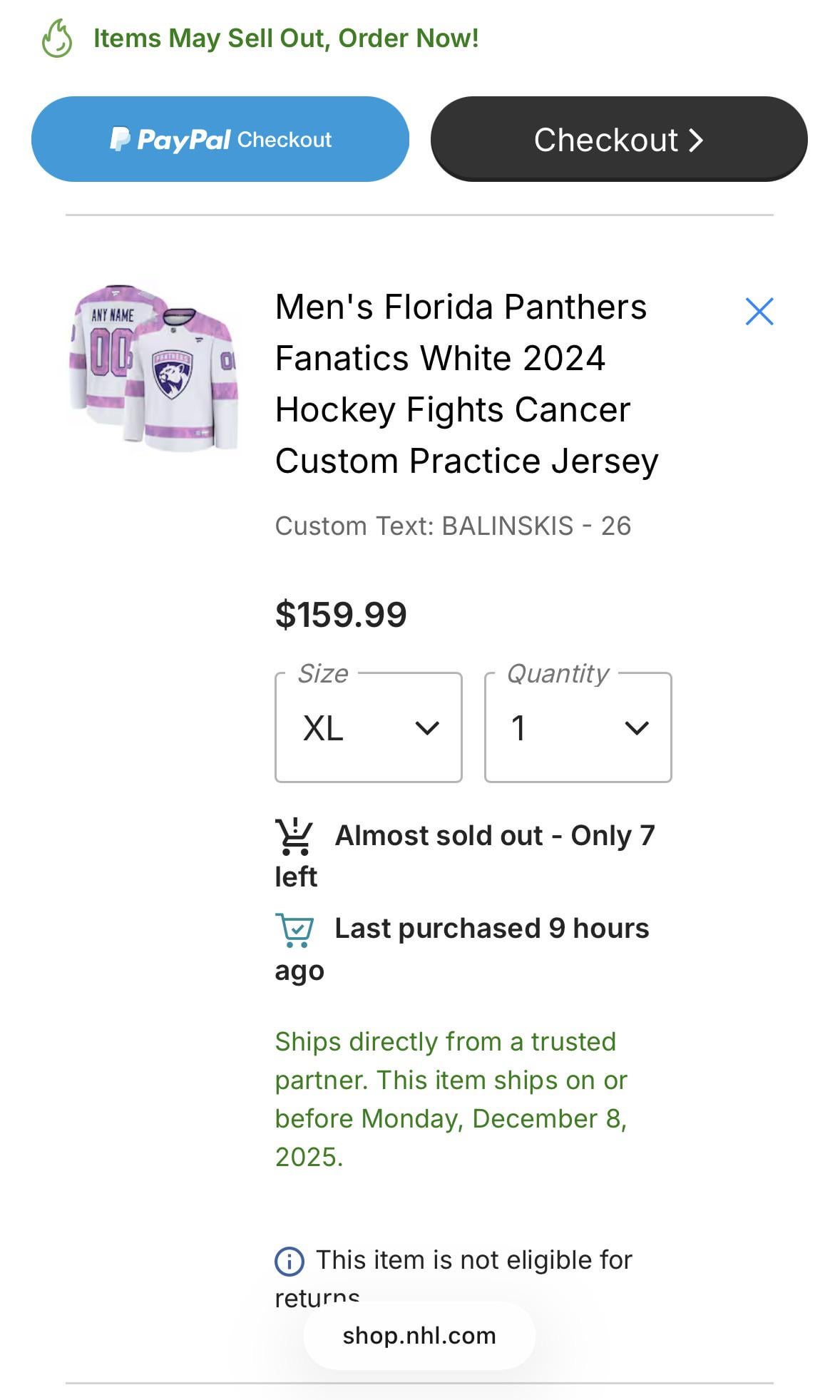 I made my decision. I am going no matter what. I hope Uvis Balinskis plays but who knows. It will be my first NHL game I am in stadium for of my life as I am a 19 year old Latvian who now lives in the states for university. Florida are near to my heart after Balinskis won the 2 Stanley Cups with you guys in 24 and 25! I was going to wear my Latvia, Balinskis jersey until I realized I dont have it with me, I left it in Latvia last time I visited home. I have most if the other Latvian NHL players with me but that doesn’t do me any good. I am purchasing the pink and white hockey fights cancer with Balinskis 26 on the back! Cutting it close on the ship date but should be fine. This will be the first NHL jersey I have purchased since living in the states!