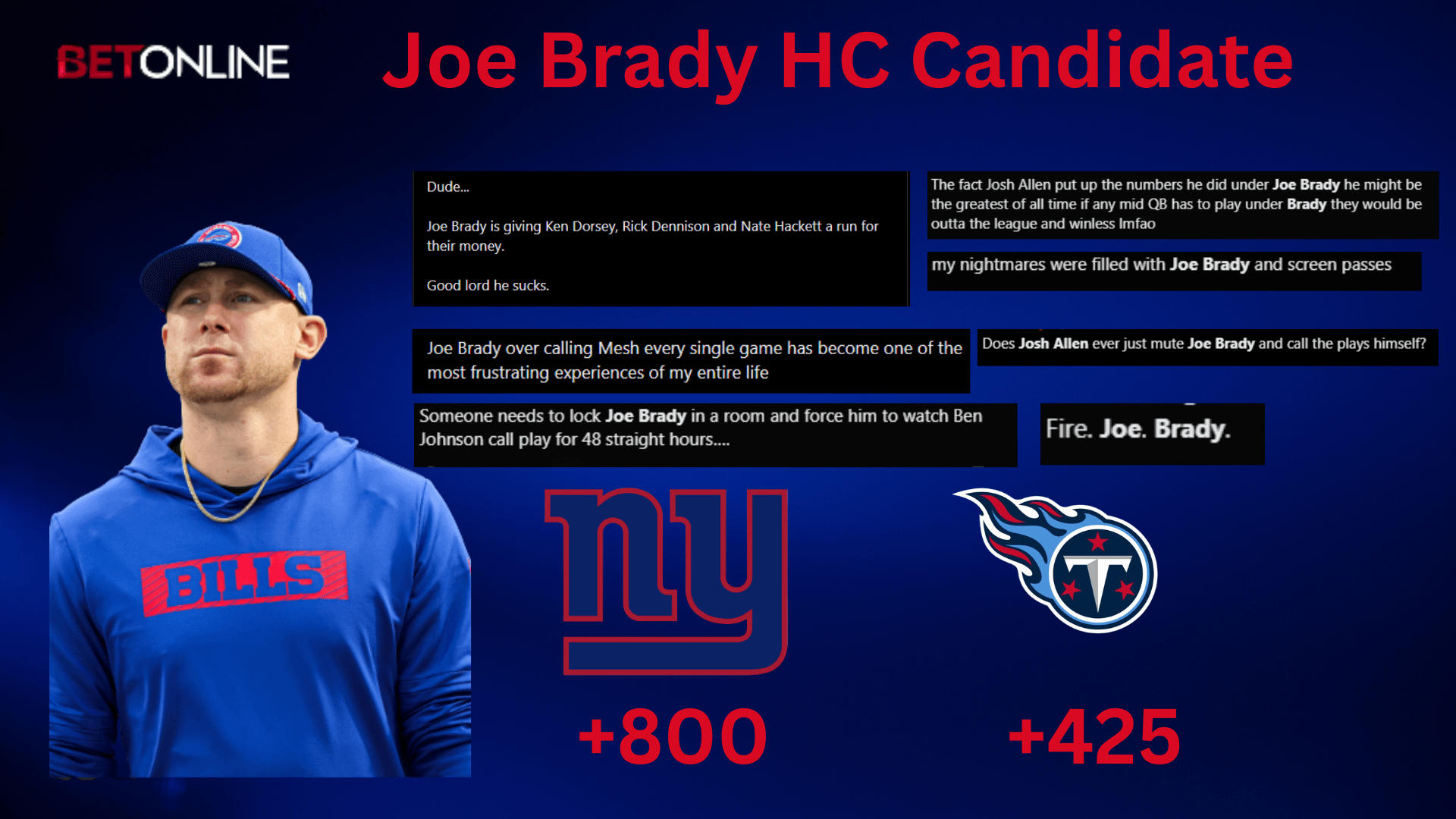 Joe Brady HC odds Giants + Titans : Huge red flag that Bills fans want him gone?
