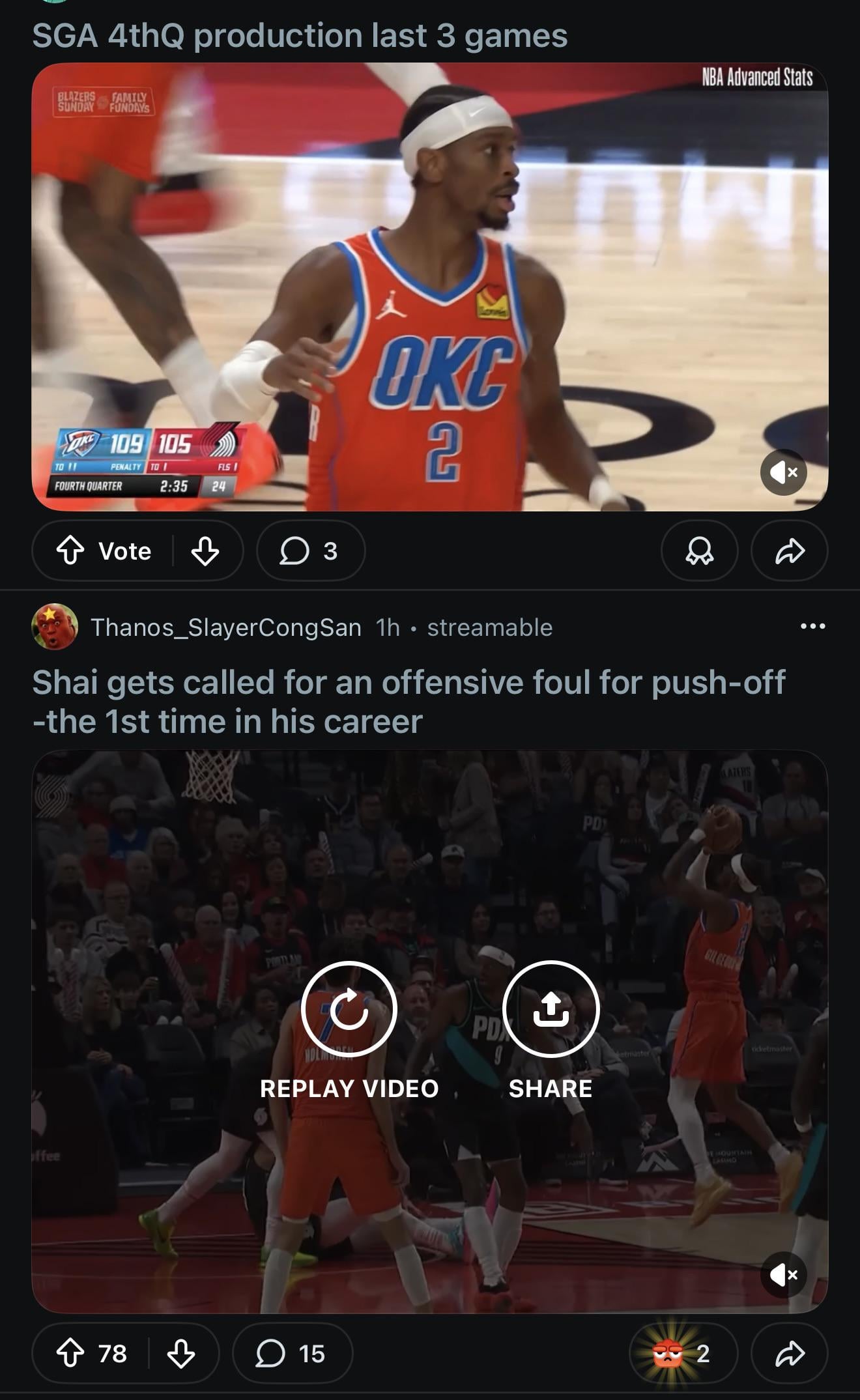 I take the OKC hate in stride but seeing this side by side is kinda humorous. Shai highlights struggle for a single upvote. Shai foul calls rack them up. If you ever need more reason not to take r/nba seriously