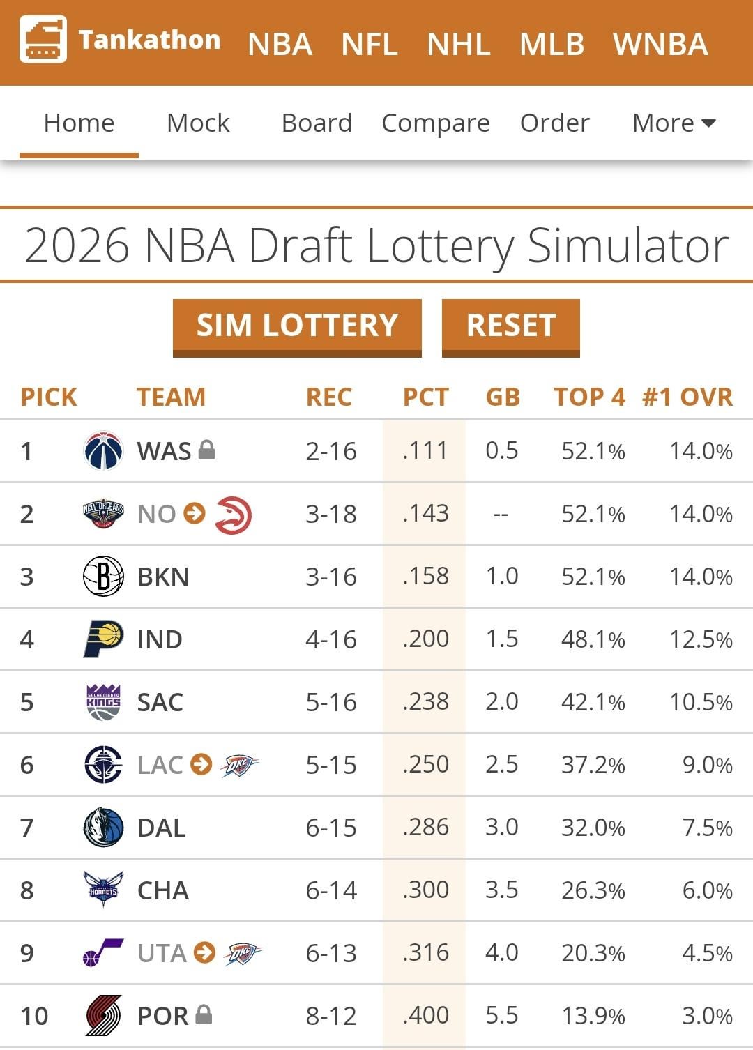 OKC (20-1) currently has a very good chance (37.2%) of a top four pick via the Clippers. I will experience a historic crashout if they get a better pick than us